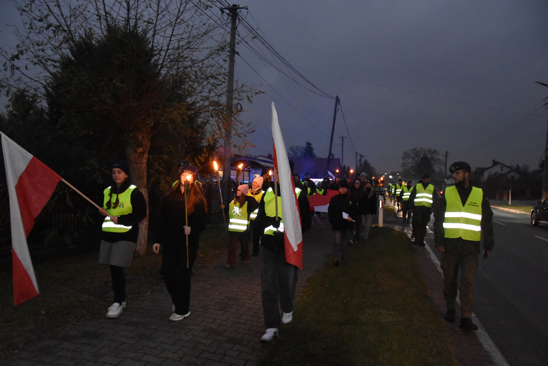 Tegoroczny ,,Marsz dla Niepodległej” rozpoczął się w dniu 10 listopada 2025 roku (poniedziałek) o godz. 16:00 z dziedzińca przy ZPO im. Jana Pawła II w Gościeradowie. Rocznicę odzyskania przez Polskę Niepodległości uczcili: wójt gminy Mariusz Szczepanik, radni i sołtysi gminy Gościeradów, społeczeństwo szkolne Zespołu Placówek Oświatowych w Gościeradowie m.in. dyrektor Beata Sajecka, wicedyrektor Tomasz Pęzioł, wychowawcy, trenerzy, uczniowie wraz z rodzicami, harcerze z 27 DH ,,Szare Szeregi", zuchy z 19 GZ ,,Leśne Skrzaty", Gminny Ośrodek Kultury w Gościeradowie m. in. dyrektor Roman Biss, 18 Brygada Zmotoryzowana, OSP w Gościeradowie, OSP w Wólce Gościeradowskiej oraz mieszkańcy gminy. Uczestnicy, którzy zgromadzili się w tym miejscu wyruszyli drogą krajową nr 74 przez Gościeradów Ukazowy, następnie przeszli drogą powiatową nr 2716L na plac przy stawach w Wólce Gościeradowskiej. Zakończeniem tegorocznego marszu było odśpiewanie hymnu Polski, pieśni ,,Legiony” i ,,Piechota”.