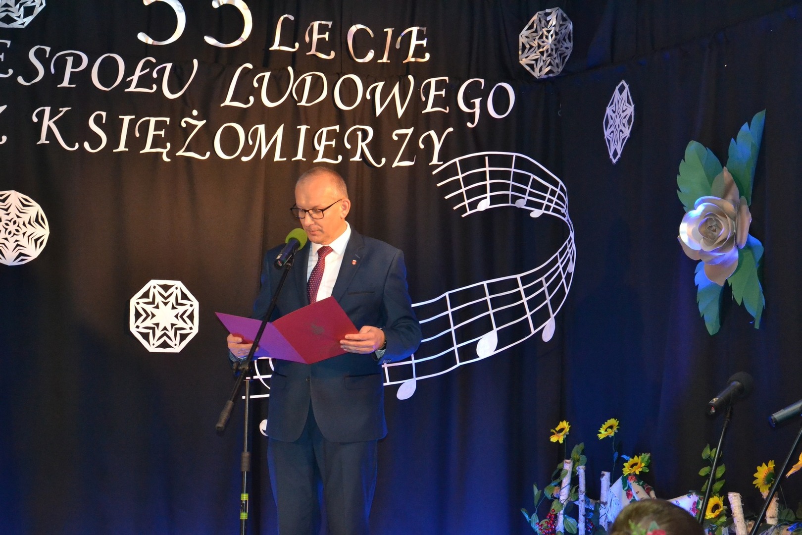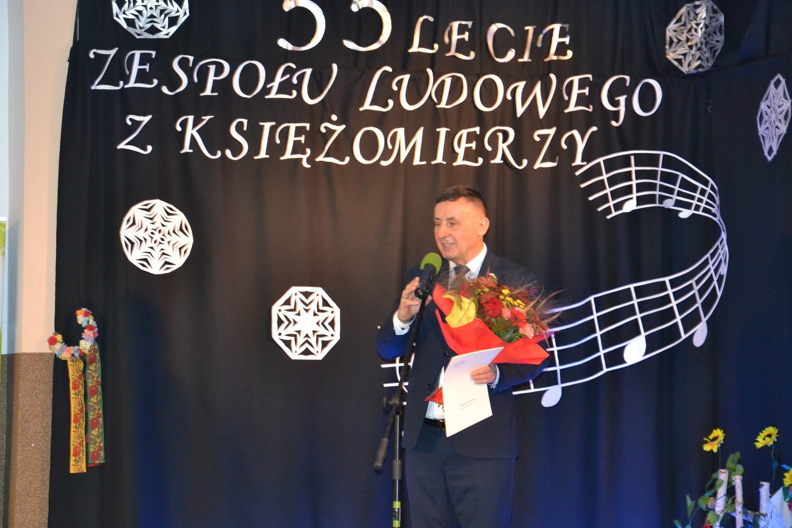 W dniu 22 października br.(sobota) odbył się jubileusz 55- lecie Zespołu Ludowego w Księżomierzy. Uroczystość rozpoczęła się mszą świętą w intencji jubilatów, którą odprawił proboszcz ksiądz Józef Hałabis w Kościele pw. Narodzenia Najświętszej Marii Panny w Księżomierzy. Następnie w remizie Ochotniczej Straży Pożarnej w Księżomierzy Zespół Ludowy odebrał życzenia z okazji swojego Święta od zaproszonych gości. Prezentem dla uczestników był koncert wykonany przez jubilatów oraz Klub Seniora z Gościeradowa, zespół "Senior Wigor" z Salomina, Kapelę Ludową z Gościeradowa i zespół "Fantazja" z Księżomierzy oraz Koło Gospodyń Wiejskich "Przyjazna Wieś Olbięcin" z gminy Trzydnik Duży. Uwieńczeniem imprezy było wspólne biesiadowanie z zespołem ,, Pluss”.