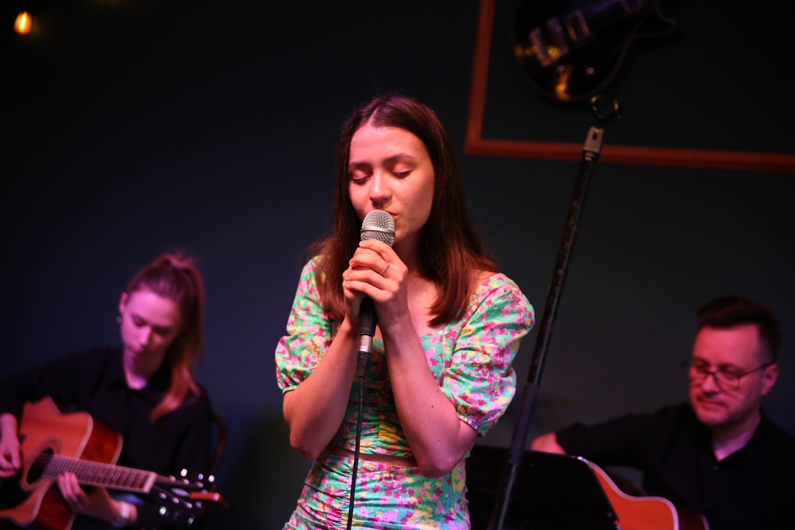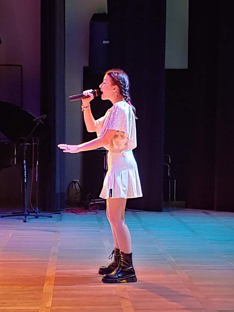Ostatnio na zajęciach z Panem Jarosławem Chmielewskim pracowała nad oprawą wokalną, której zwieńczeniem był debiut podczas ceremonii zaślubin. Naszą młodą wokalistkę możemy również usłyszeć na uroczystościach gminnych oraz szkolnych. Z dumą reprezentuje swoją szkołę na przeglądach i konkursach wokalnych na szczeblach gminnych, wojewódzkich, powiatowych, ogólnopolskich i międzynarodowych.