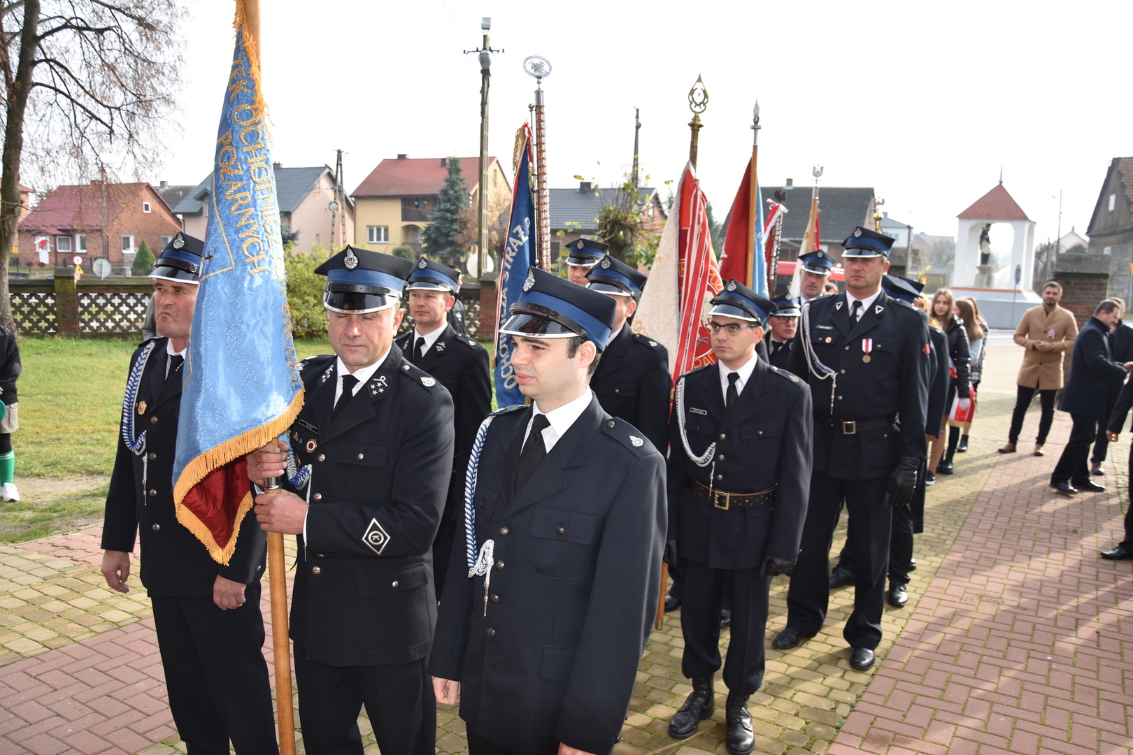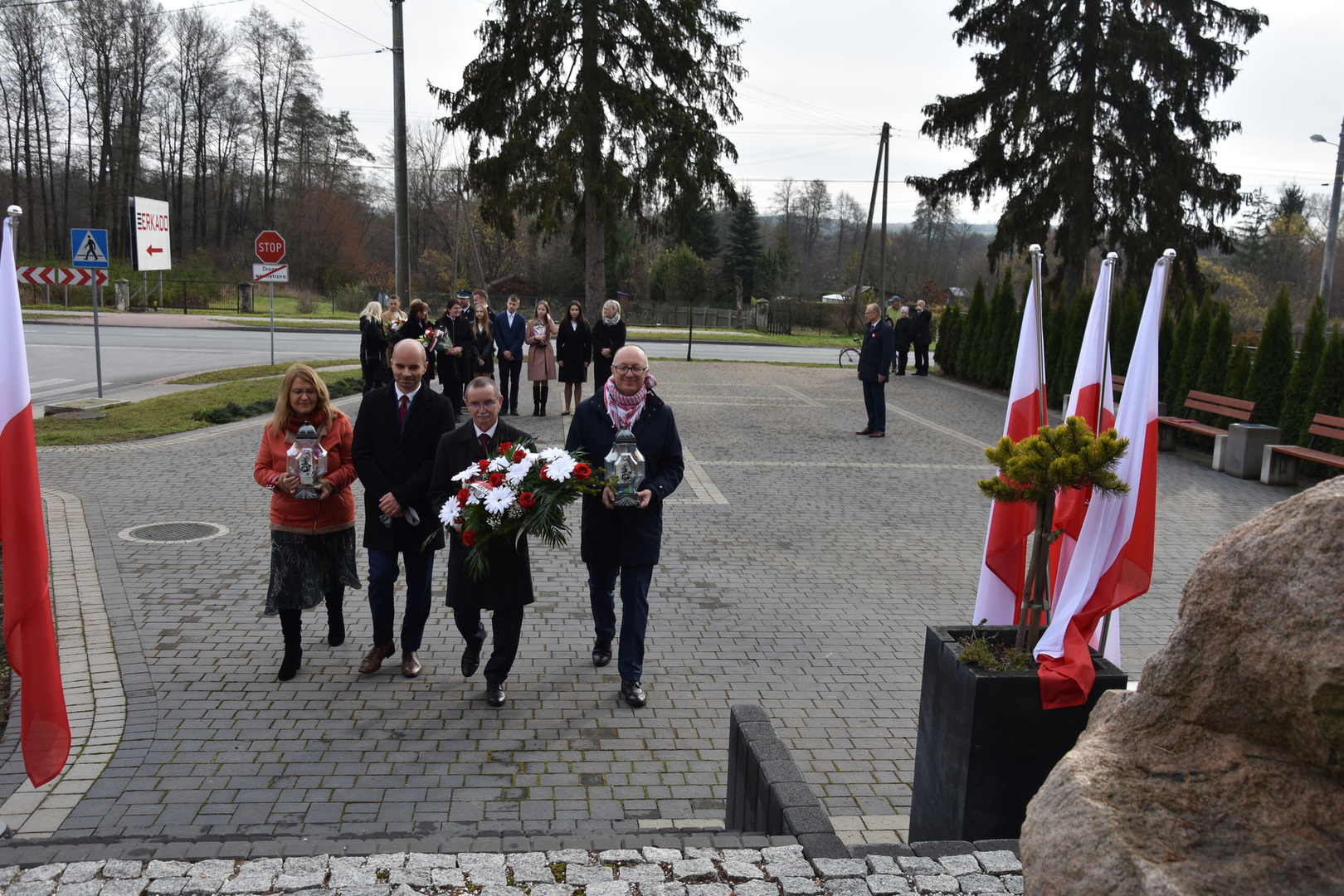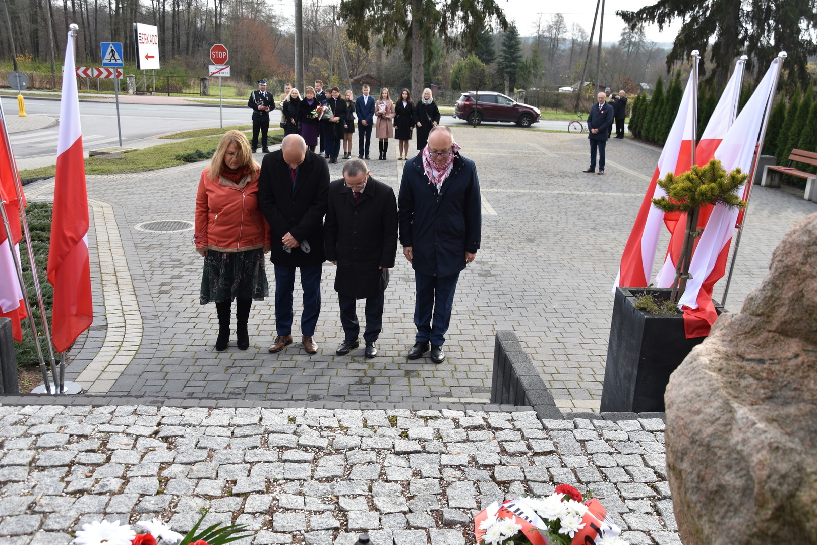 W dniu 11 listopada 2022 r.(piątek) o godz. 11:00 odbyła się Msza Święta odprawiona przez proboszcza ks. kan. Andrzeja Kontka w Kościele Parafialnym w Gościeradowie w intencji Ojczyzny rozpoczynająca się Koncertem Pieśni Patriotycznych wykonanym przez uczniów z ZPO im. Jana Pawła II w Gościeradowie. W uroczystej mszy św. udział wzięli przedstawiciele PSP im. ks. Karola Konopki w Szczecynie i OSP Liśnik Duży, a także poczty sztandarowe szkół: ZPO im. Jana Pawła II w Gościeradowie, ZS im. Józefa Twaroga w Księżomierzy, PSP im. Janiny Wierzchowskiej w Liśniku Dużym oraz jednostek: OSP Gościeradów, OSP Księżomierz, OSP Aleksandrów, OSP Salomin, OSP Suchodoły. Po mszy świętej wójt gminy Mariusz Szczepanik, przewodniczący rady gminy Krzysztof Galant, sekretarz gminy Jarosław Czerw, skarbnik gminy Ewa Lipiec, członek zarządu powiatu Marek Kołtun, Dyrektor Publicznej Szkoły Podstawowej w Liśniku Dużym Marzena Długosz wraz z nauczycielem Edytą Dudzińską i uczniami, KGW w Mniszku w składzie: Anna Lenard i Monika Jedlińska, radna rady gminy Aneta Stasiak, OSP Księżomierz upamiętniając odzyskania niepodległości przez Polskę złożyli wiązanki oraz zapalili znicze przy Pomniku Pamięci Narodowej w Gościeradowie.