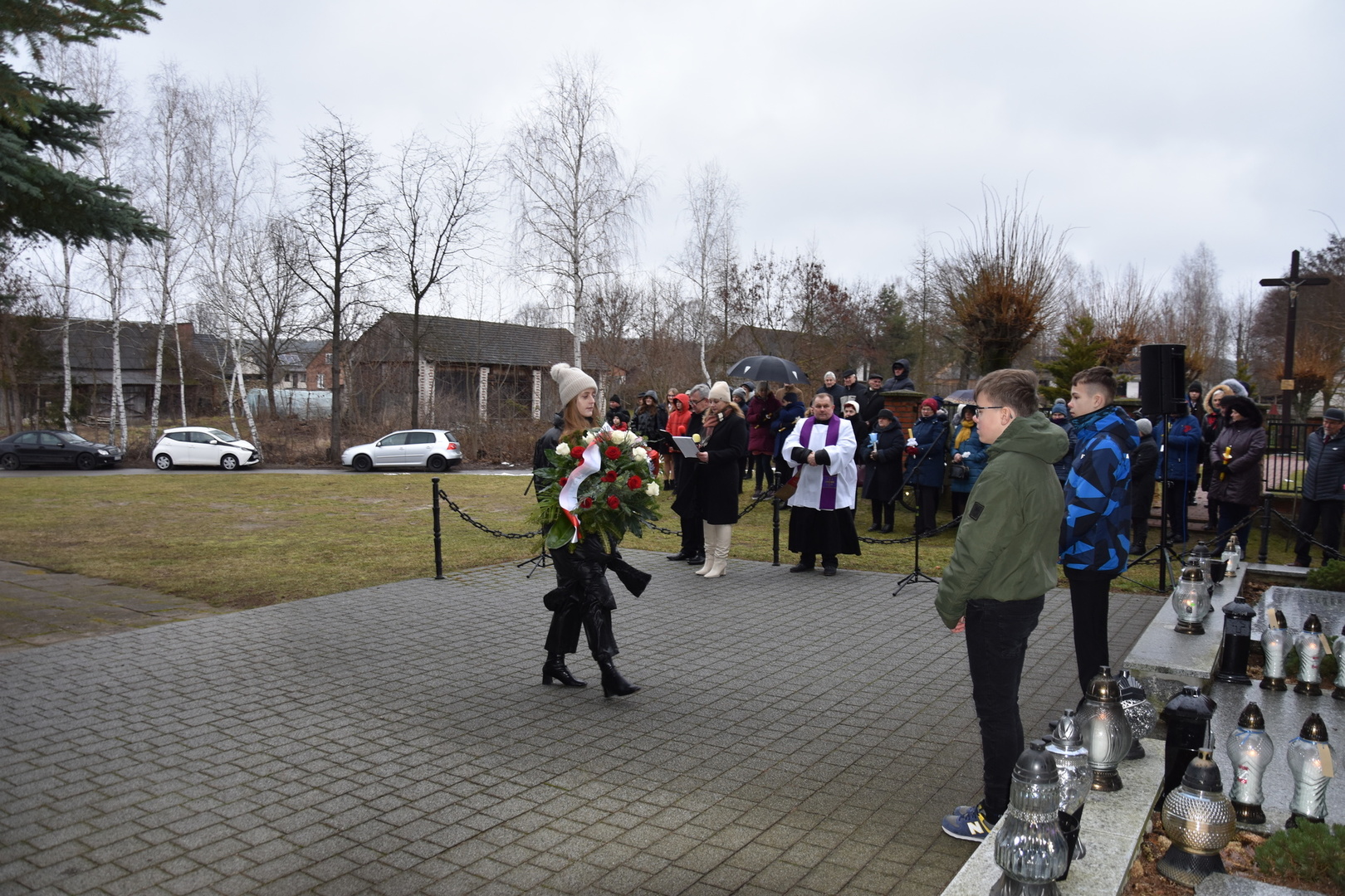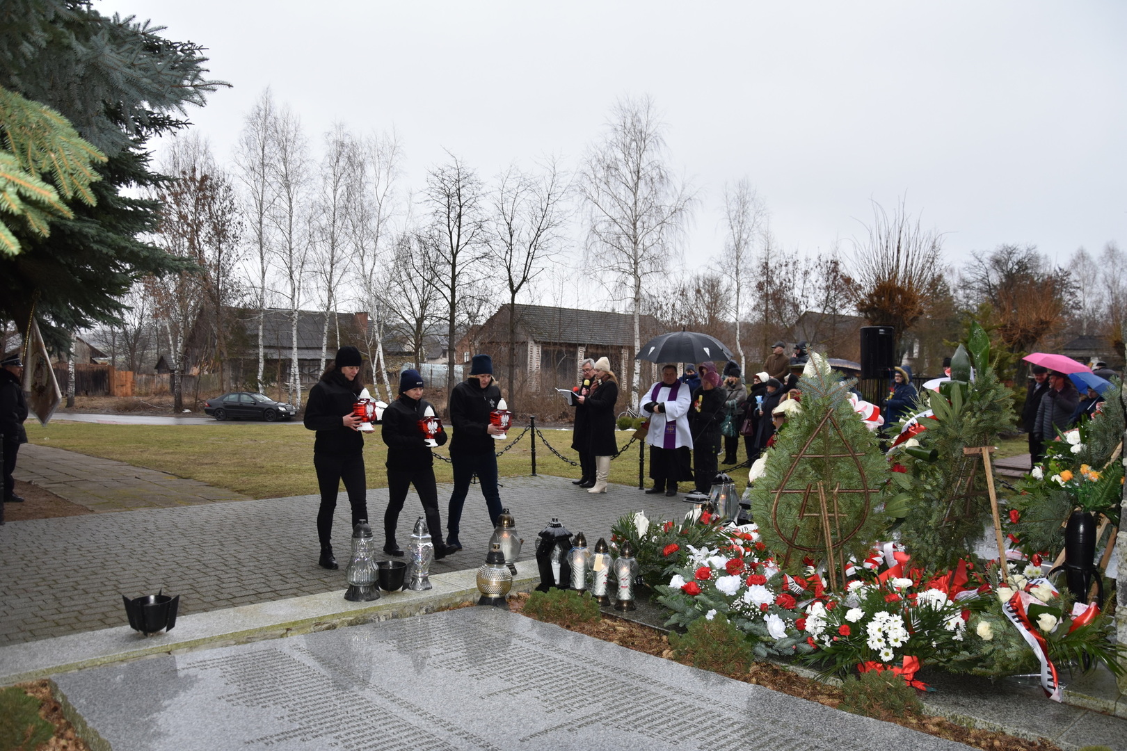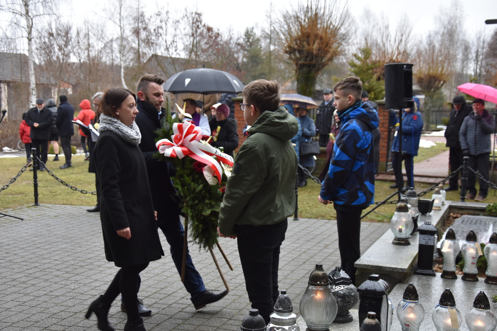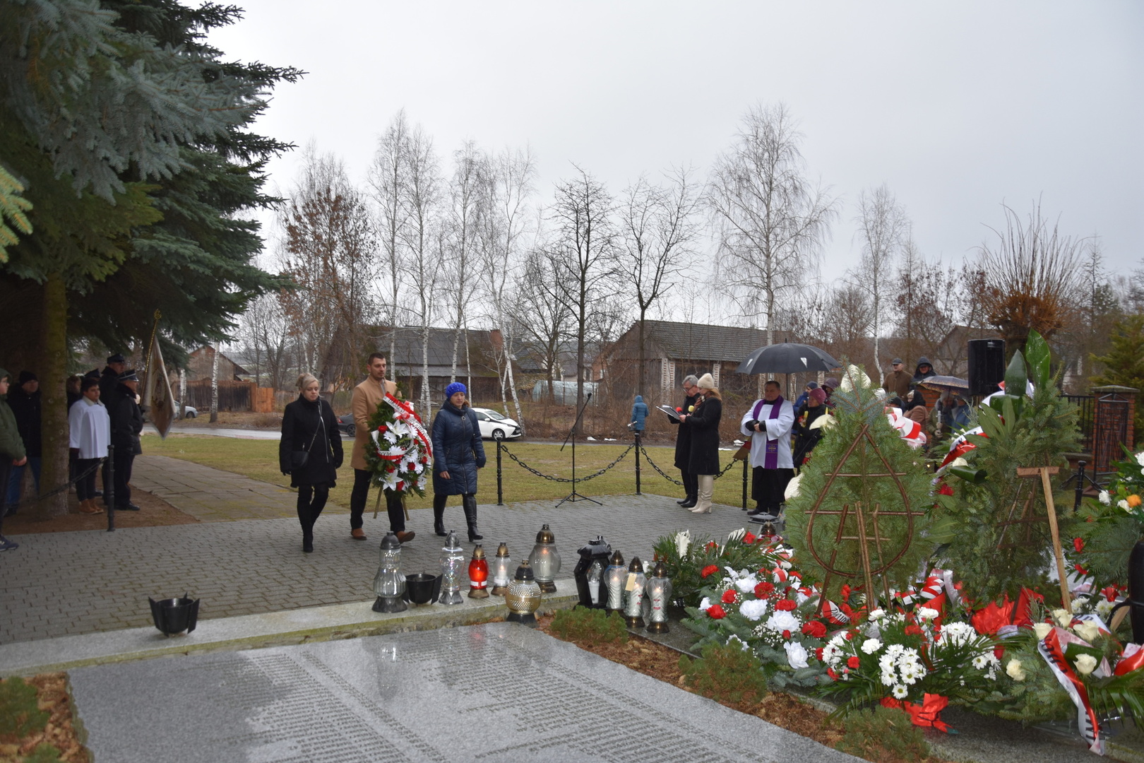 Po wygłoszeniu przemówień przez Wójta Gminy Gościeradów i zaproszonych na uroczystość gości nastąpiło złożenie wieńców i zniczy.