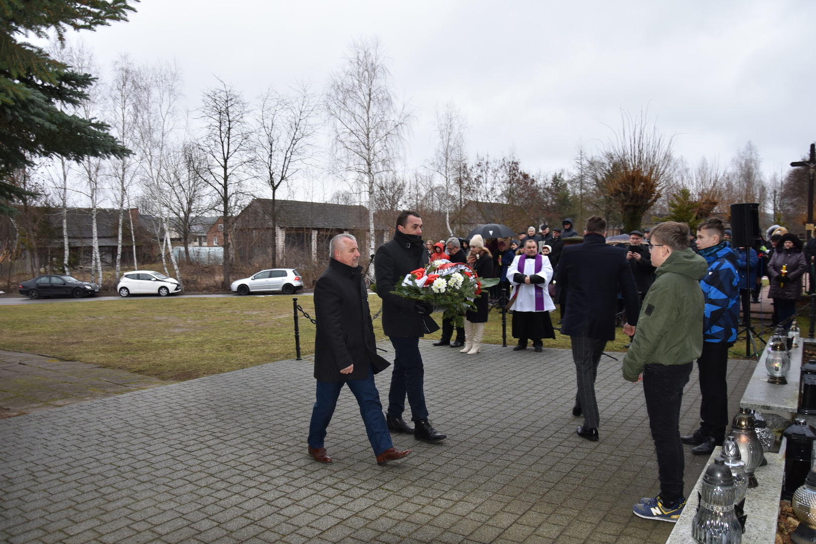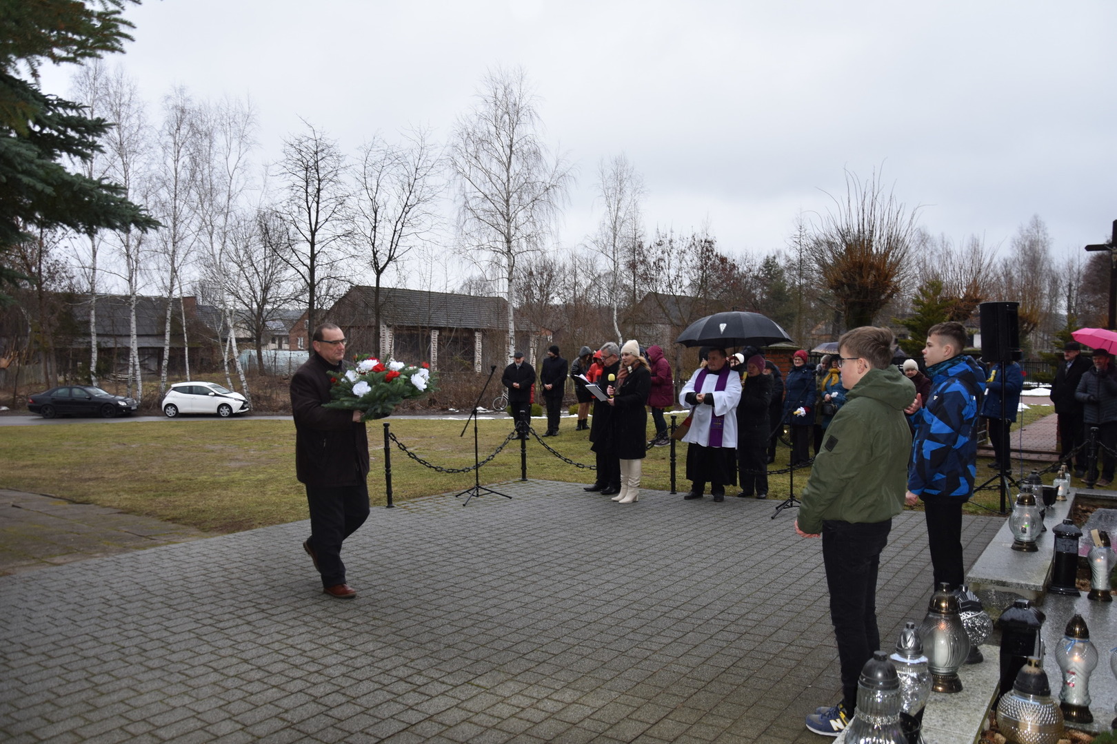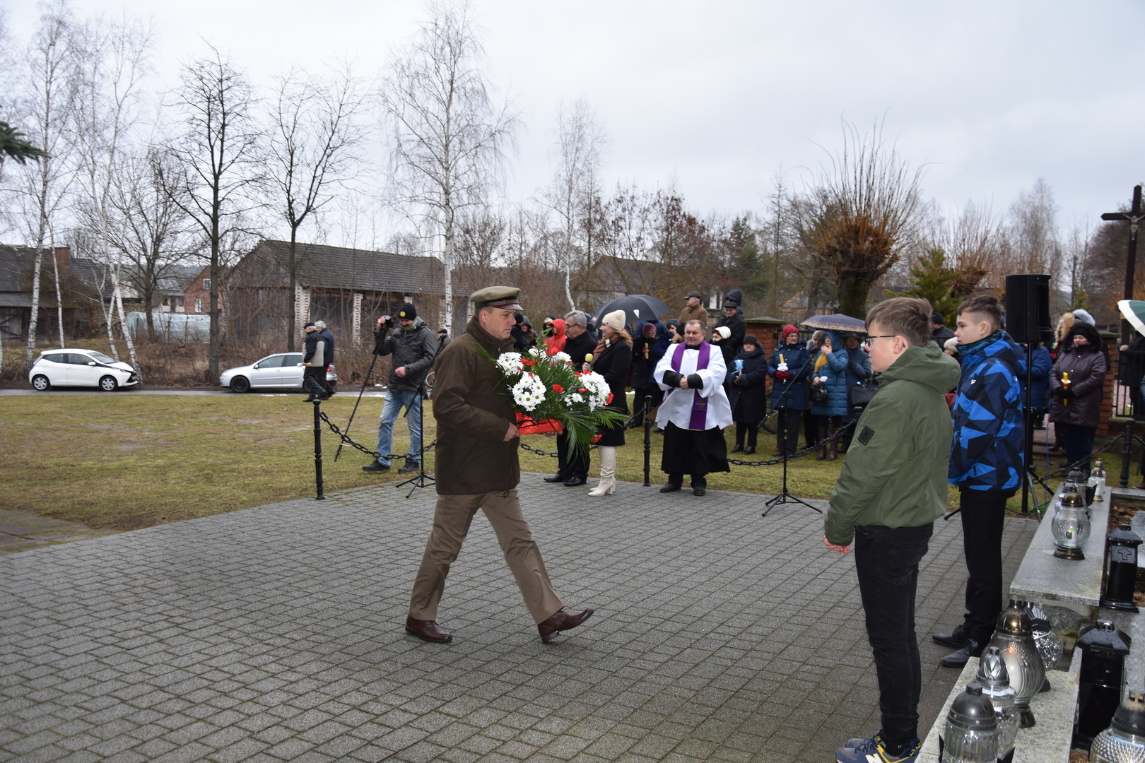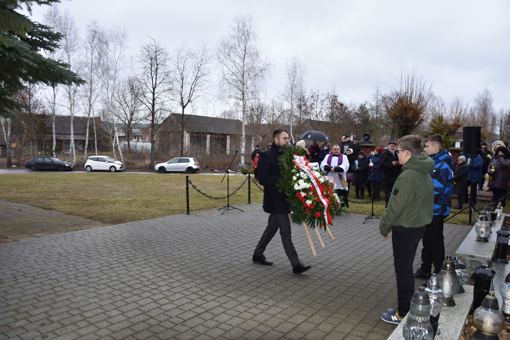 Po wygłoszeniu przemówień przez Wójta Gminy Gościeradów i zaproszonych na uroczystość gości nastąpiło złożenie wieńców i zniczy.