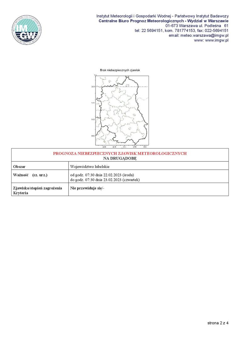 Ważność (cz. urz.) od godz. 07:30 dnia 21.02.2023 (wtorek) do godz. 07:30 dnia 22.02.2023 (środa)