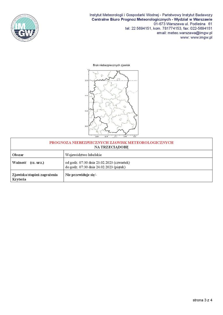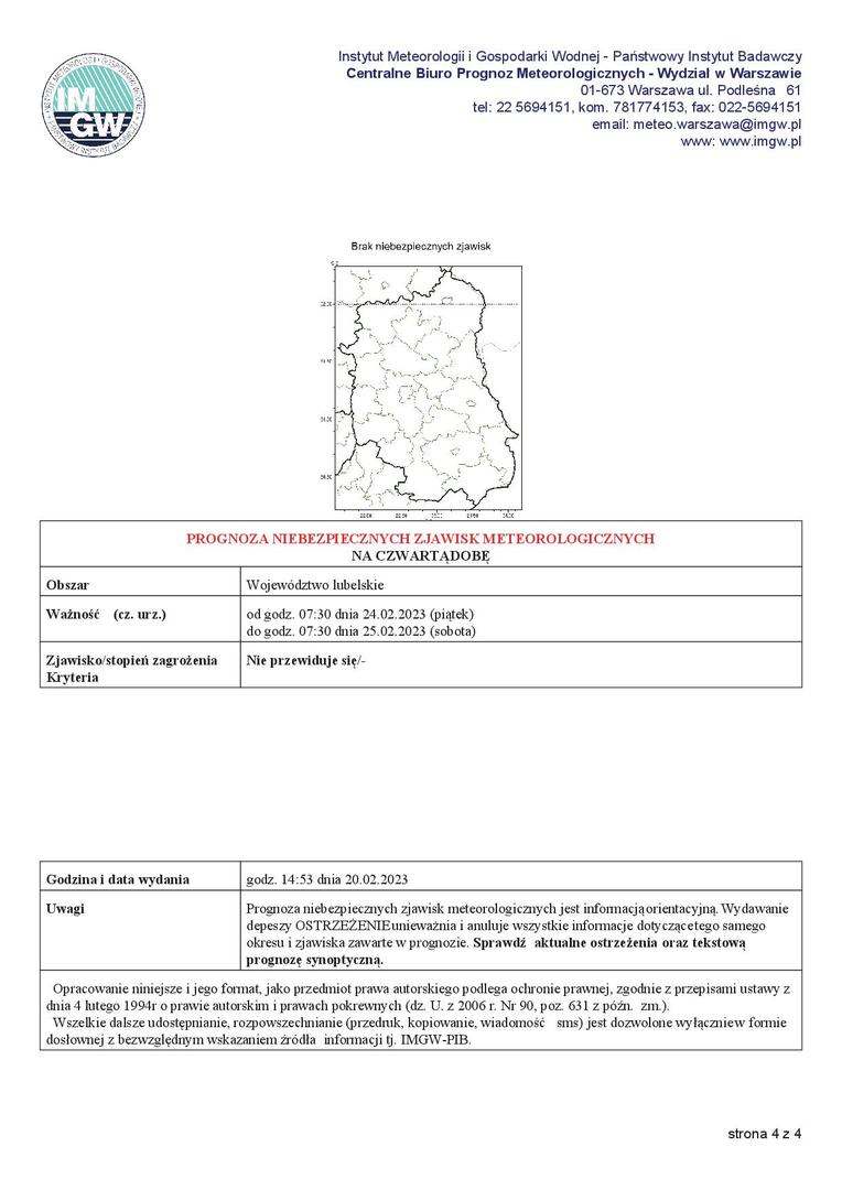 Ważność (cz. urz.) od godz. 07:30 dnia 23.02.2023 (czwartek) do godz. 07:30 dnia 24.02.2023 (piątek)