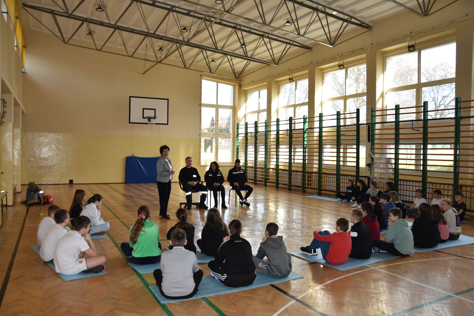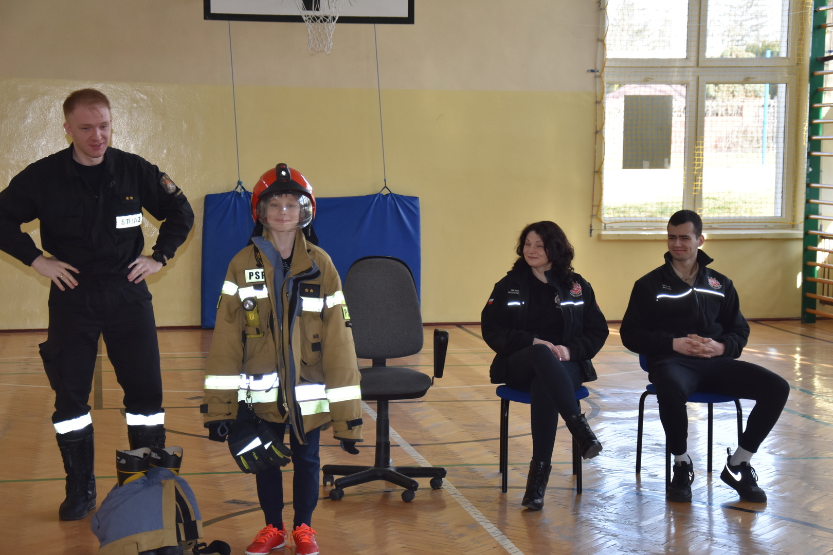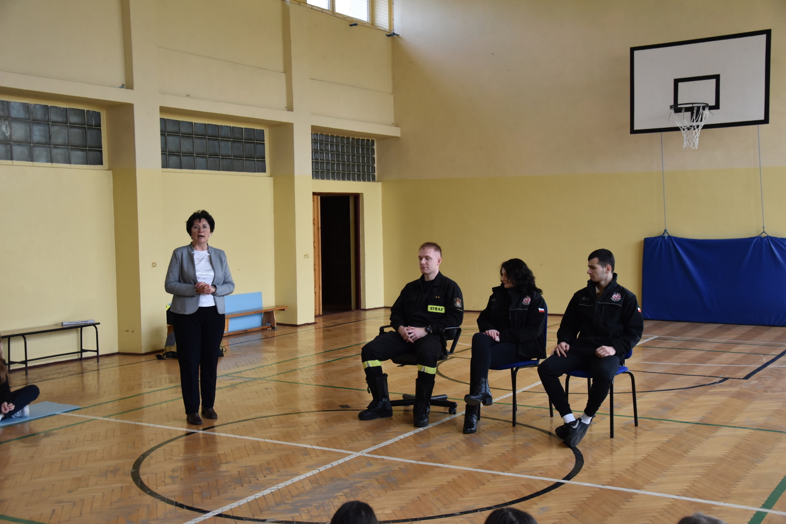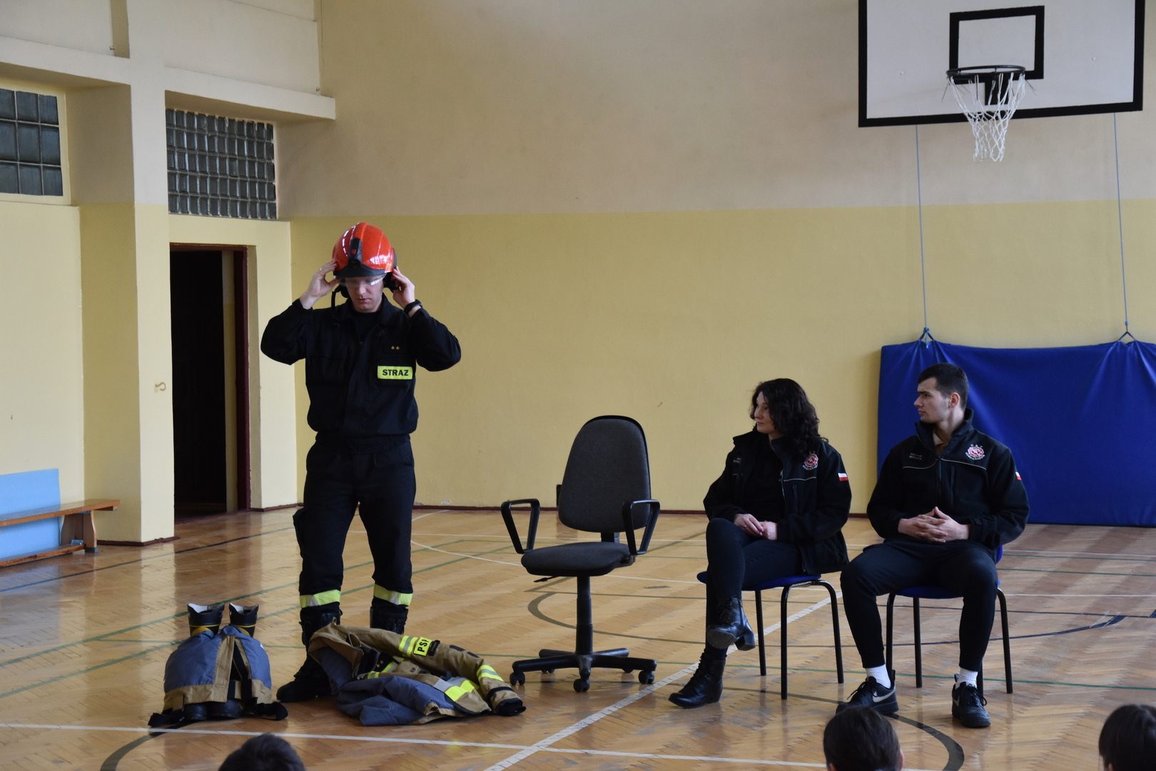Fotorelacja ze spotkania w Zespole Placówek Oświatowych im. Jana Pawła II w Gościeradowie dotyczącego promowania bezpieczeństwa pozwalającego na zwiększenie świadomosci i odpowiedzialnych zachowań przy udziale instytucji: Komendy Powiatowej Policji w Kraśniku, Komisariatu Policji w Annopolu, Komendy Powiatowej Państwowej Straży Pożarnej w Kraśniku oraz Ochotniczej Straży Pożarnej w Gościeradowie.