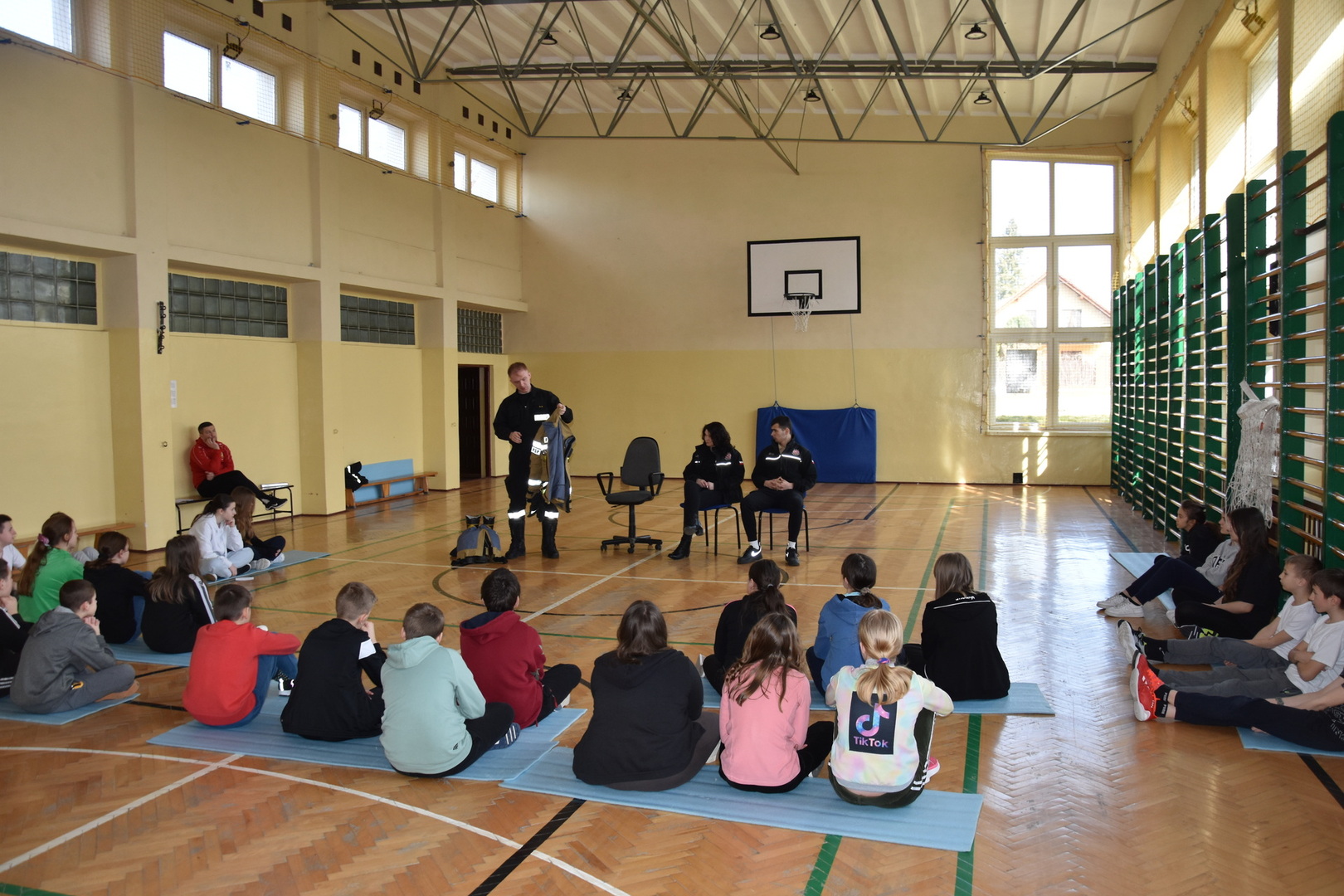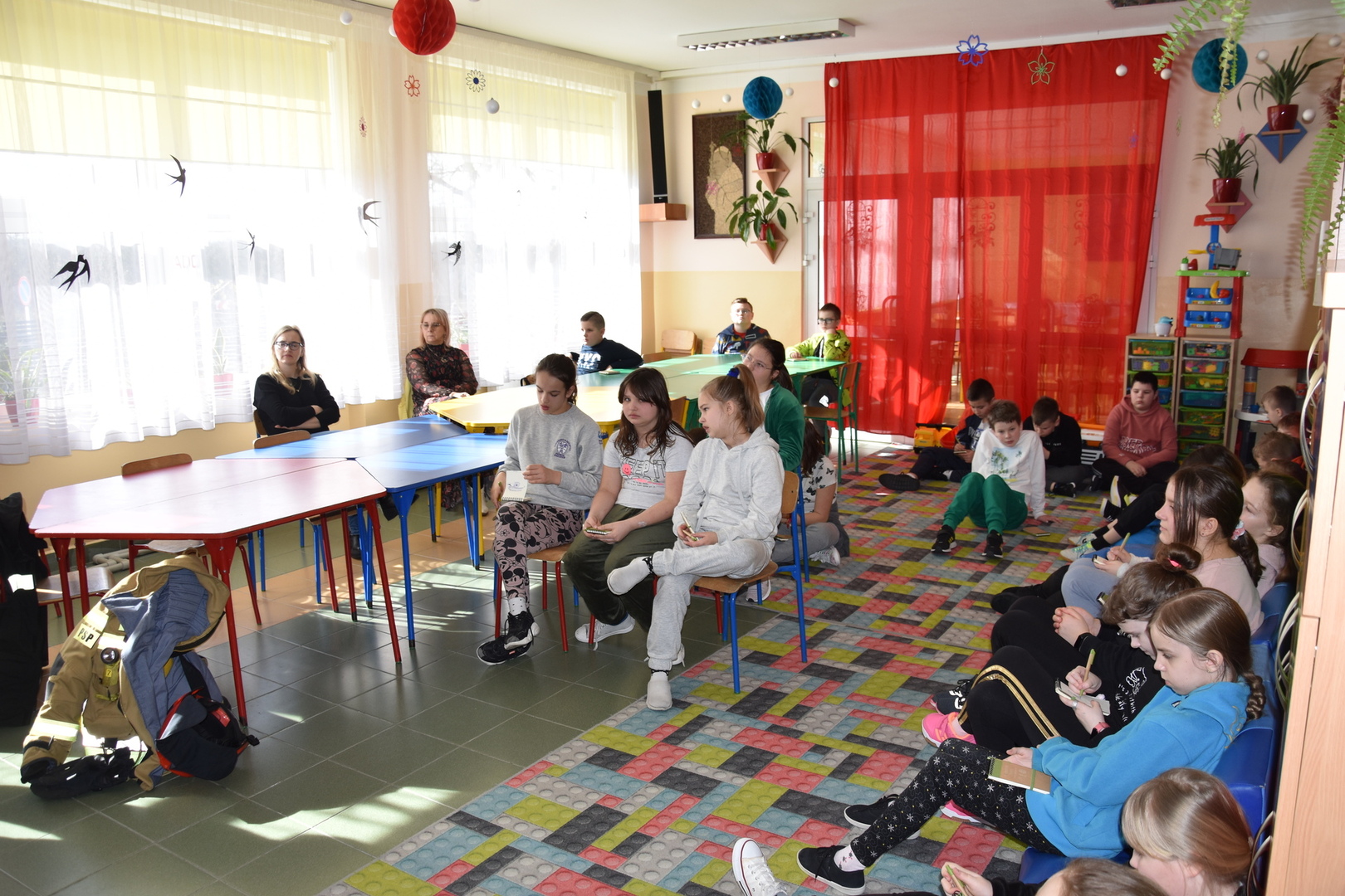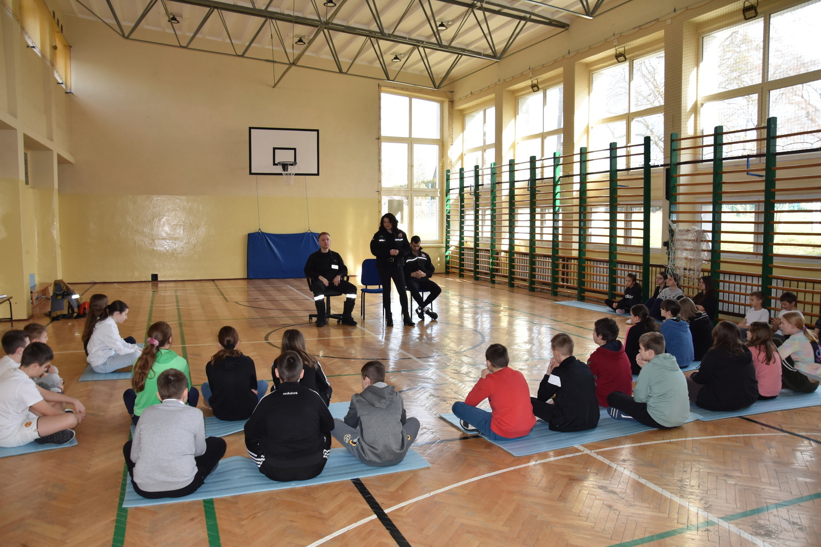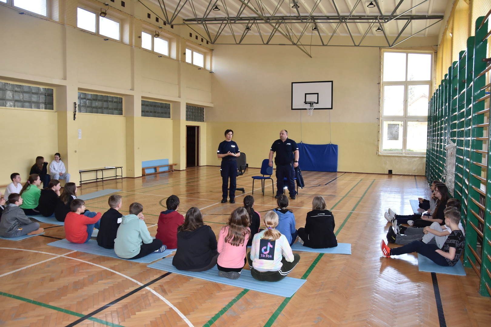 Fotorelacja ze spotkania w Zespole Placówek Oświatowych im. Jana Pawła II w Gościeradowie dotyczącego promowania bezpieczeństwa pozwalającego na zwiększenie świadomosci i odpowiedzialnych zachowań przy udziale instytucji: Komendy Powiatowej Policji w Kraśniku, Komisariatu Policji w Annopolu, Komendy Powiatowej Państwowej Straży Pożarnej w Kraśniku oraz Ochotniczej Straży Pożarnej w Gościeradowie.