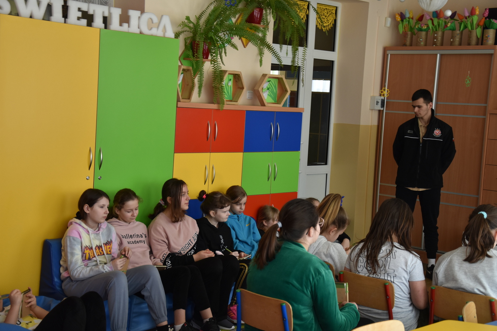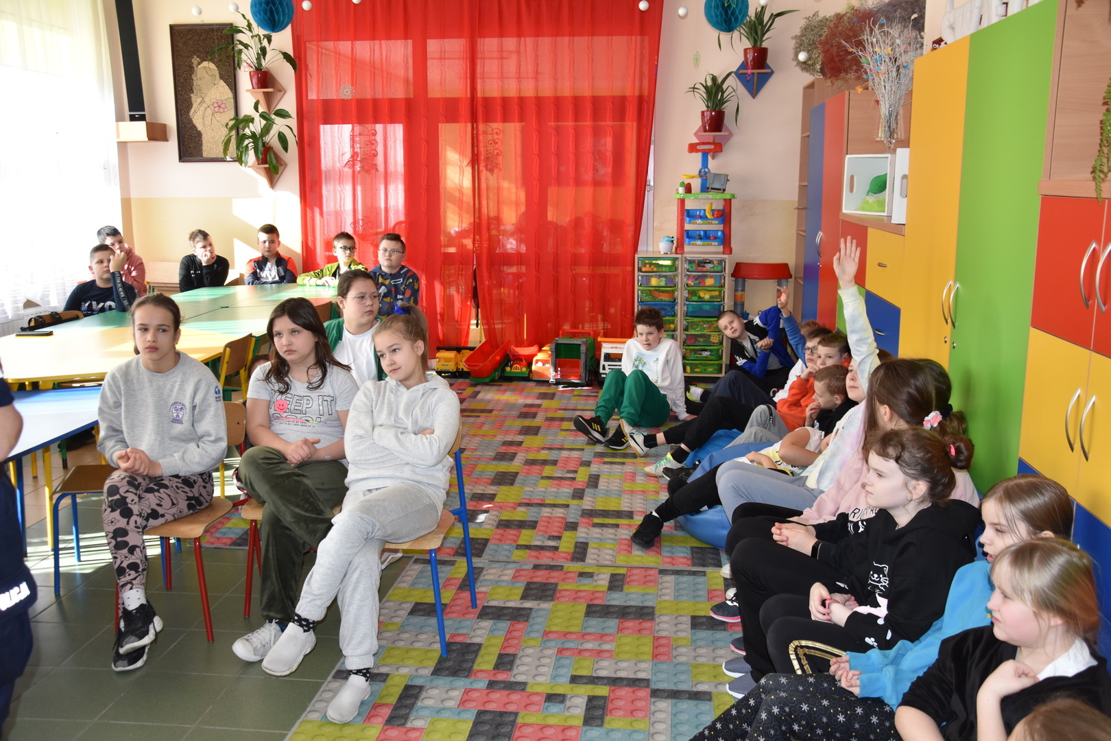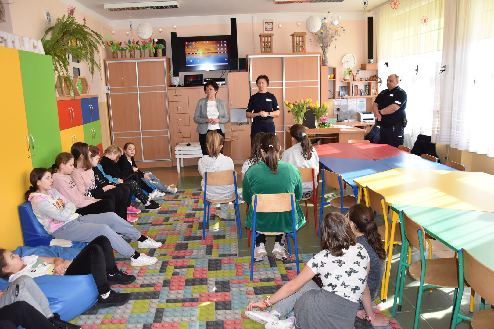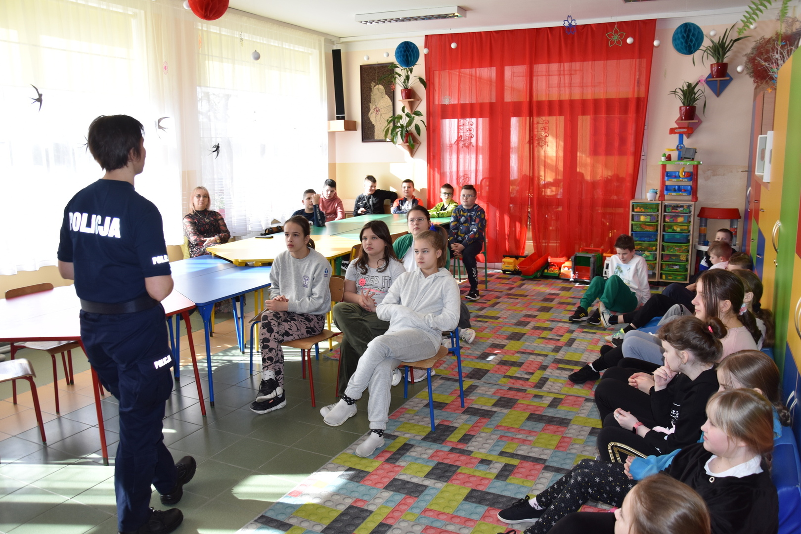 Fotorelacja ze spotkania w Zespole Placówek Oświatowych im. Jana Pawła II w Gościeradowie dotyczącego promowania bezpieczeństwa pozwalającego na zwiększenie świadomosci i odpowiedzialnych zachowań przy udziale instytucji: Komendy Powiatowej Policji w Kraśniku, Komisariatu Policji w Annopolu, Komendy Powiatowej Państwowej Straży Pożarnej w Kraśniku oraz Ochotniczej Straży Pożarnej w Gościeradowie.
