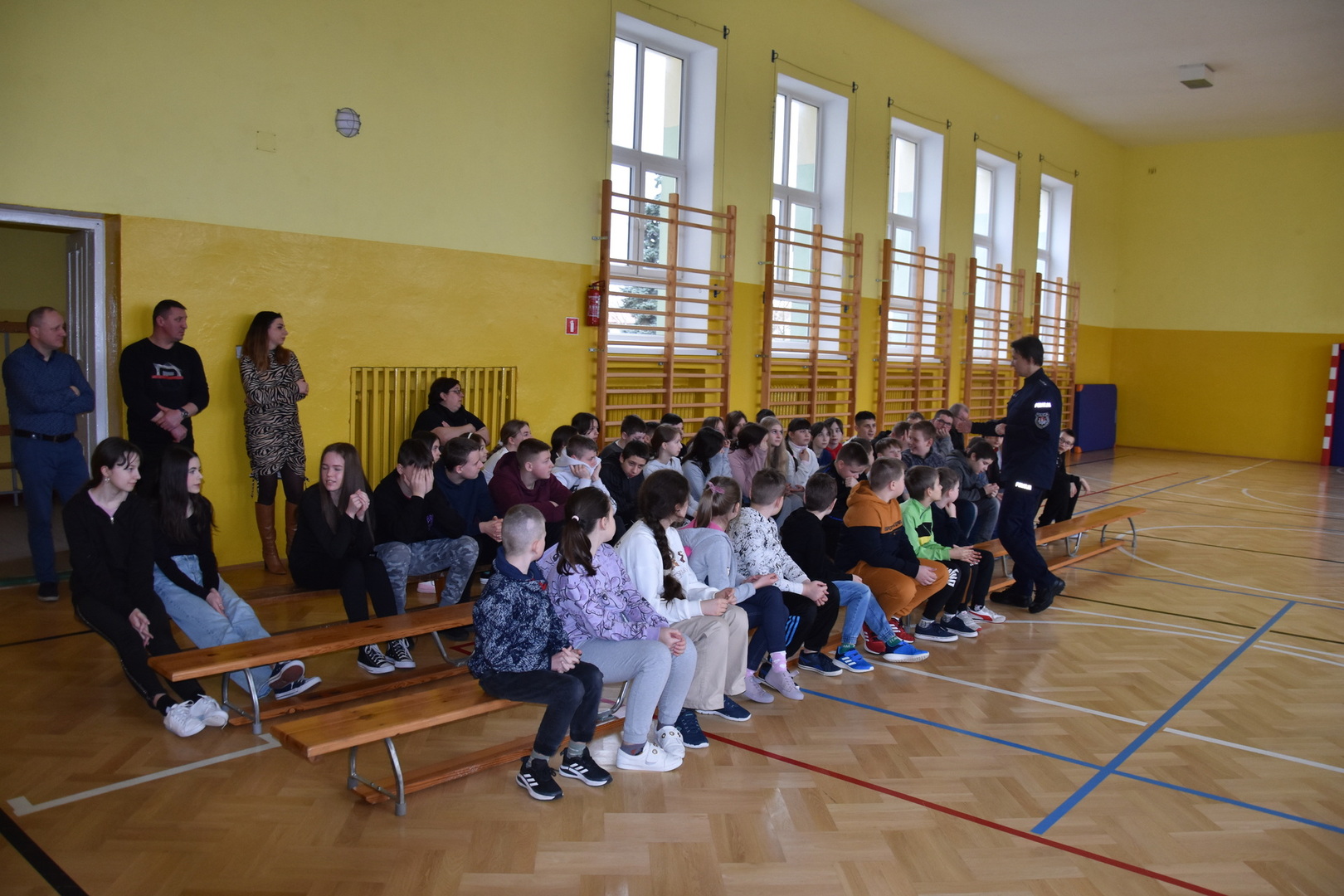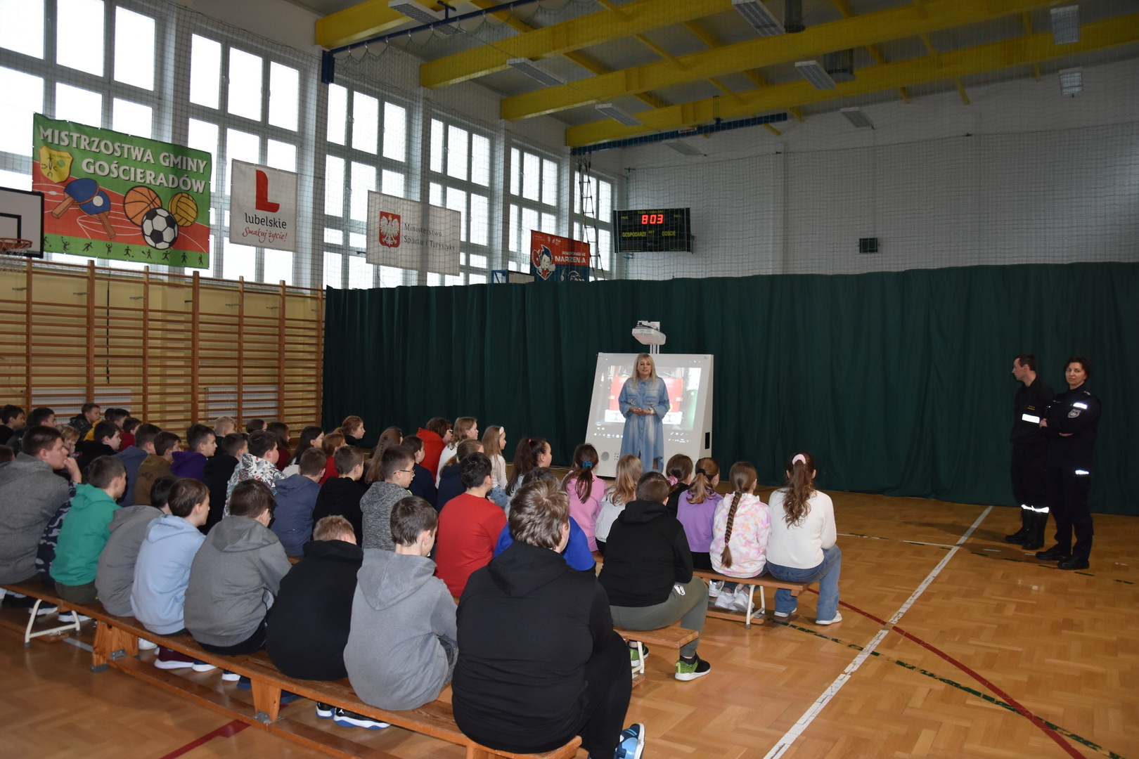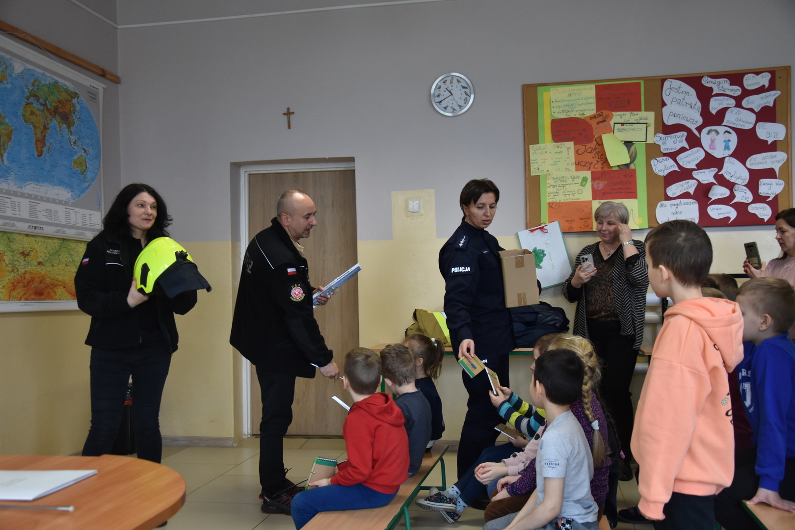 Fotorelacja ze spotkań w Publicznej Szkole Podstawowej im. Janiny Wierzchowskiej w Liśniku Dużym, Zespole Szkół im. Józefa Twaroga w Księżomierzy, Publicznej Szkole Podstawowej im. Marii Konopnickiej w Mniszku oraz Publicznej Szkole Podstawowej im. ks. Karola Konopki w Szczecynie dotyczących promowania bezpieczeństwa pozwalającego na zwiększenie świadomości i odpowiedzialnych zachowań przy udziale instytucji: Komendy Powiatowej Policji w Kraśniku, Komisariatu Policji w Annopolu, Komendy Powiatowej Państwowej Straży Pożarnej w Kraśniku oraz Ochotniczej Straży Pożarnej w Gościeradowie.