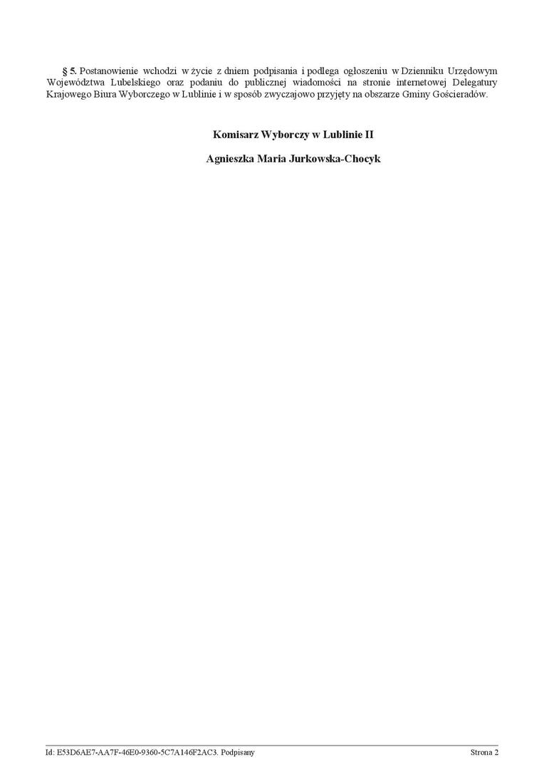 § 3. Postanowienie podlega przekazaniu Wójtowi Gminy Gościeradów, Wojewodzie Lubelskiemu oraz Państwowej Komisji Wyborczej.