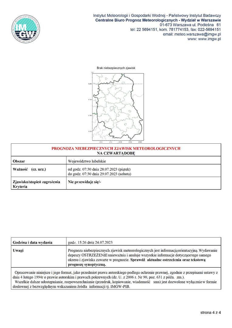 Ważność (cz. urz.) od godz. 07:30 dnia 27.07.2023 (czwartek) do godz. 07:30 dnia 28.07.2023 (piątek)
