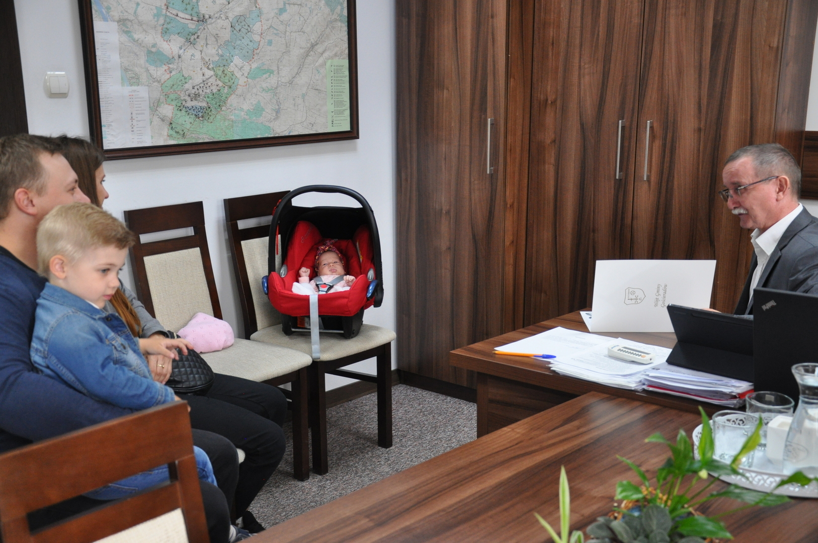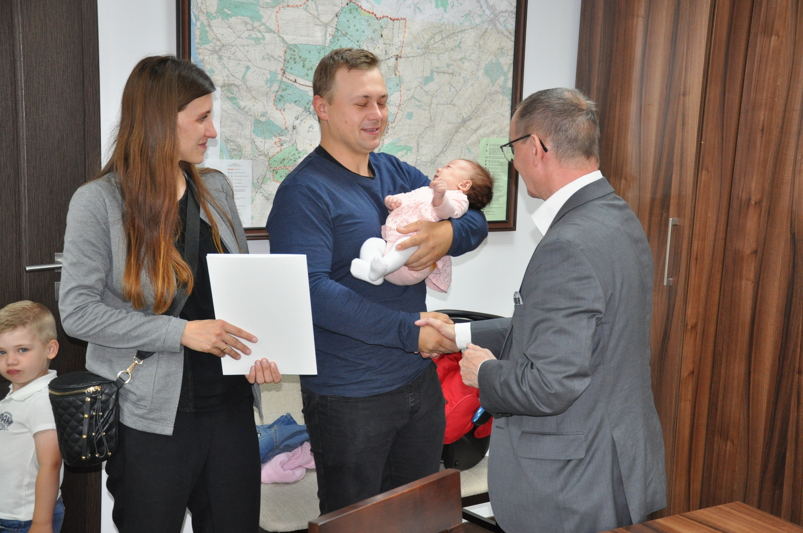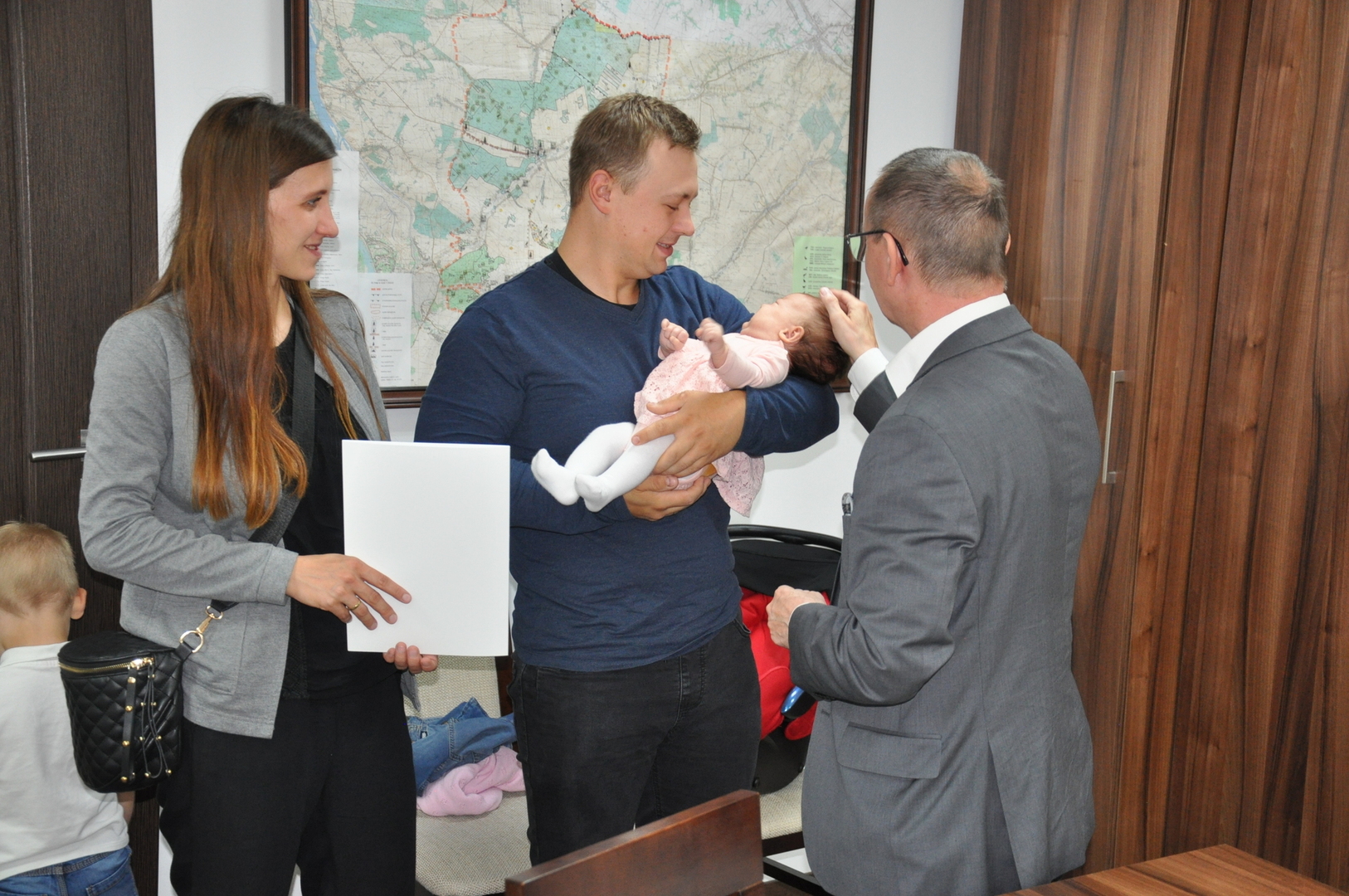 Spotkanie było wyrazem radości z powodu narodzin nowego mieszkańca gminy. Maluch otrzymał kartę podarunkową, a jego rodzice pamiątkowy list gratulacyjny.