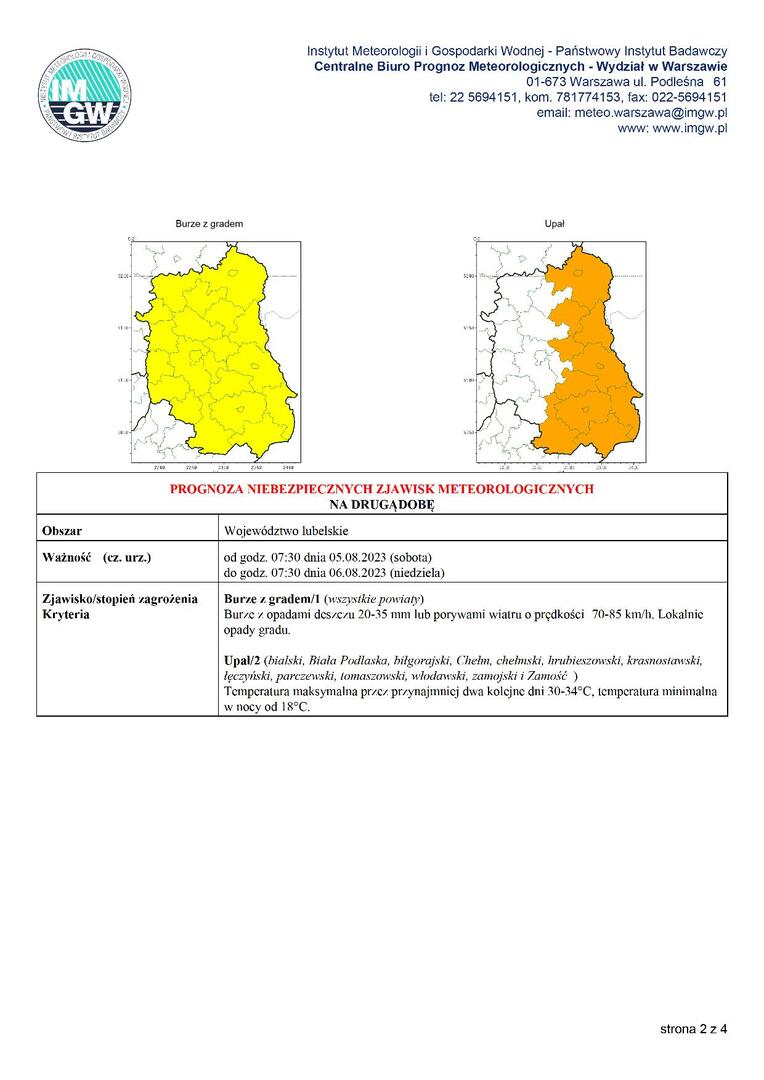 Ważność (cz. urz.) od godz. 07:30 dnia 05.08.2023 (sobota) do godz. 07:30 dnia 06.08.2023 (niedziela)