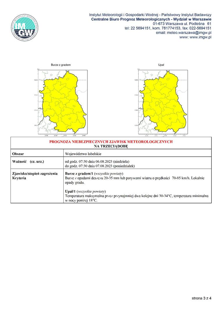 Ważność (cz. urz.) od godz. 07:30 dnia 06.08.2023 (niedziela) do godz. 07:30 dnia 07.08.2023 (poniedziałek)