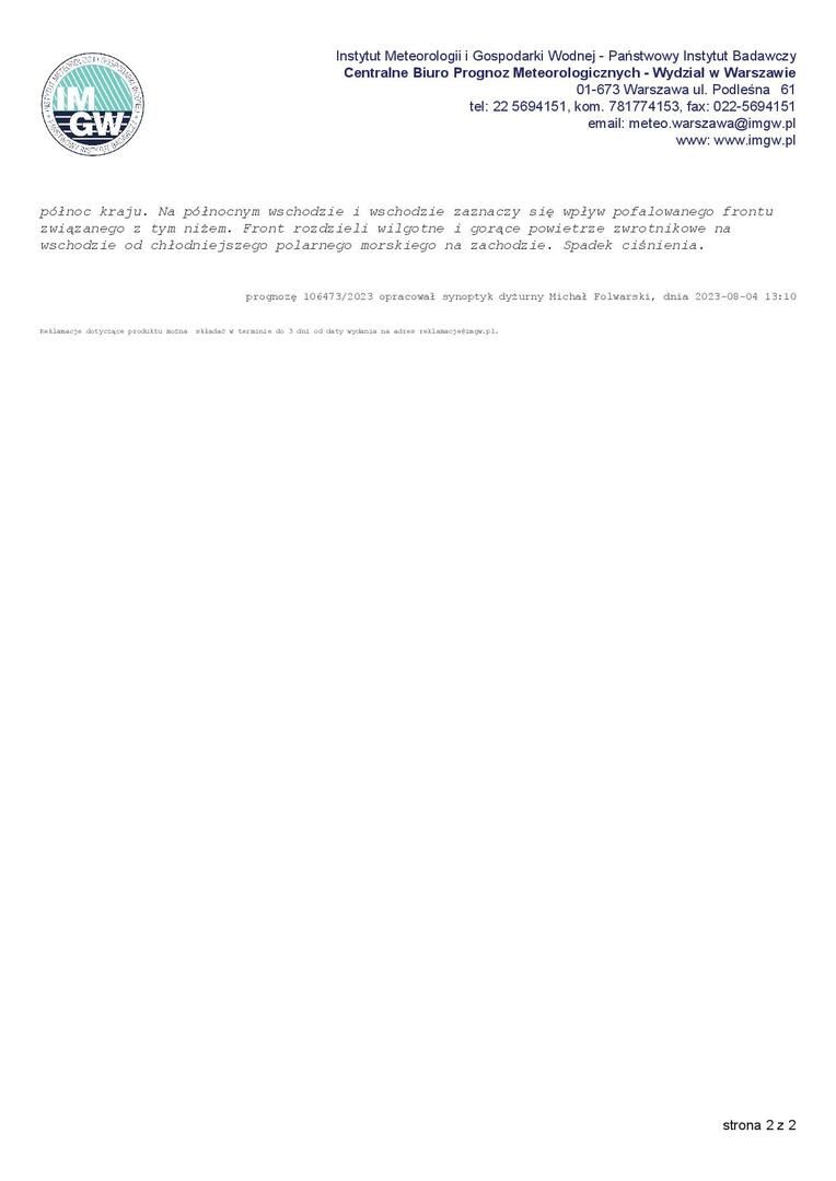 prognozę 106473/2023 opracował synoptyk dyżurny Michał Folwarski, dnia 2023-08-04 13:10