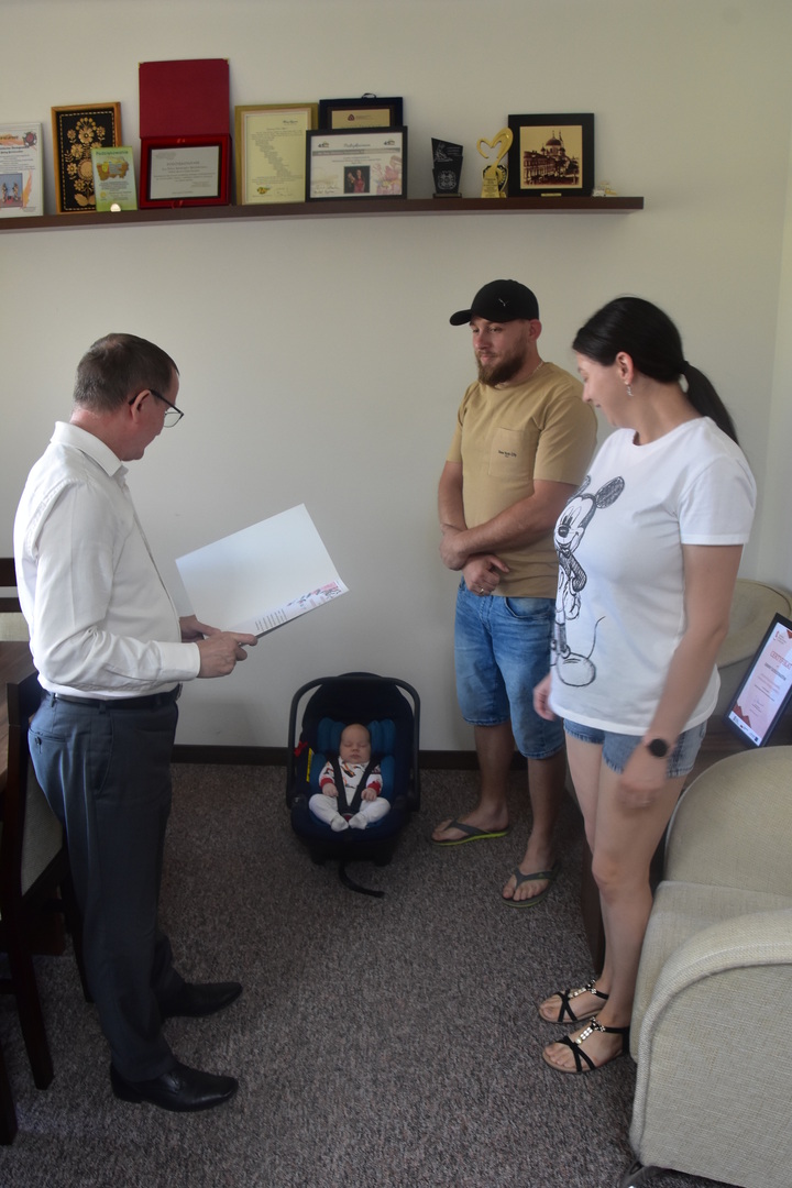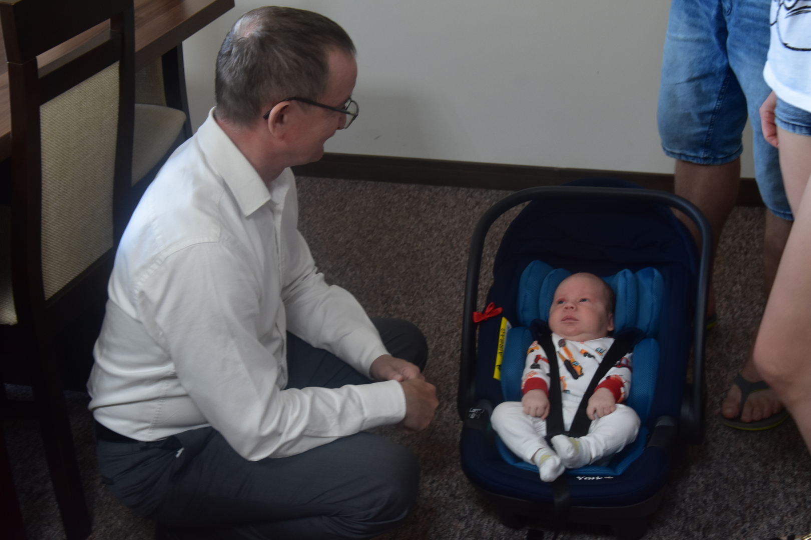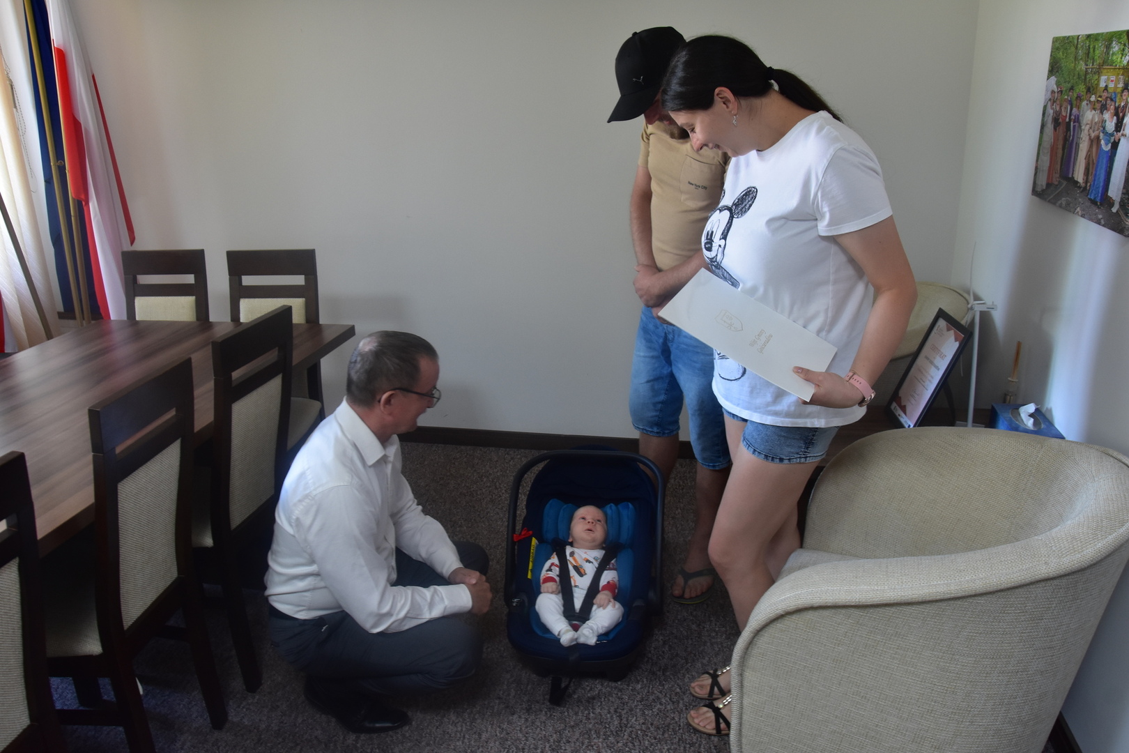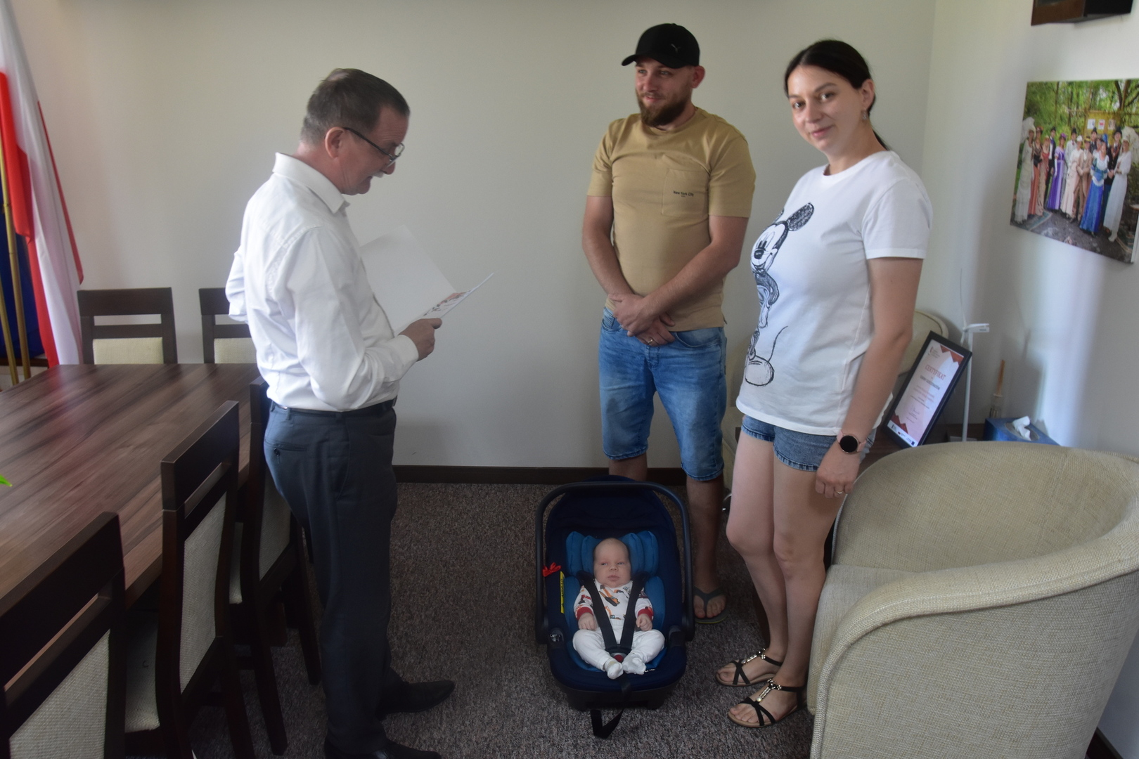 Spotkanie było wyrazem radości z powodu narodzin nowego mieszkańca gminy. Maluch otrzymał kartę podarunkową, a jego rodzice pamiątkowy list gratulacyjny.