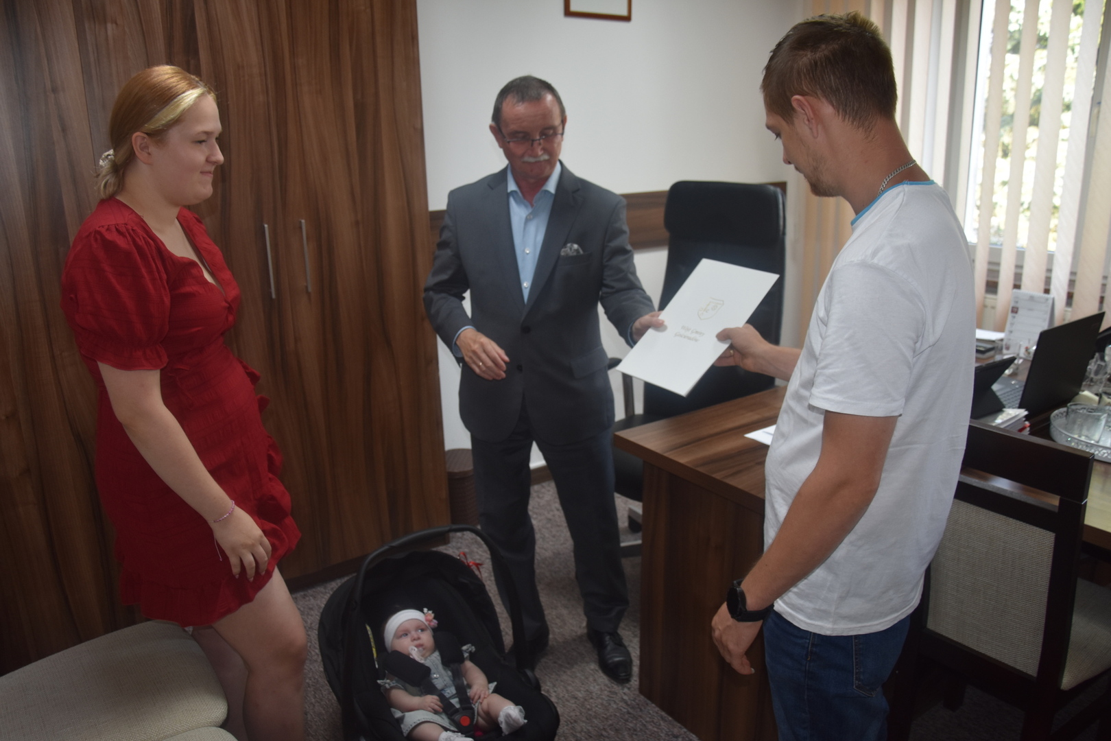 Wójt Gminy Gościeradów w dniu dzisiejszym tj. 18 sierpnia br. powitał nową mieszkankę gminy Marię Słabczyńską. Serdecznie gratulujemy nowo upieczonym rodzicom Krzysztofowi i Aleksandrze Słabczyńskim z okazji narodzin córki. Z całego serca życzymy, aby w nowym składzie stanowili zgodną i szczęśliwą rodzinę.
