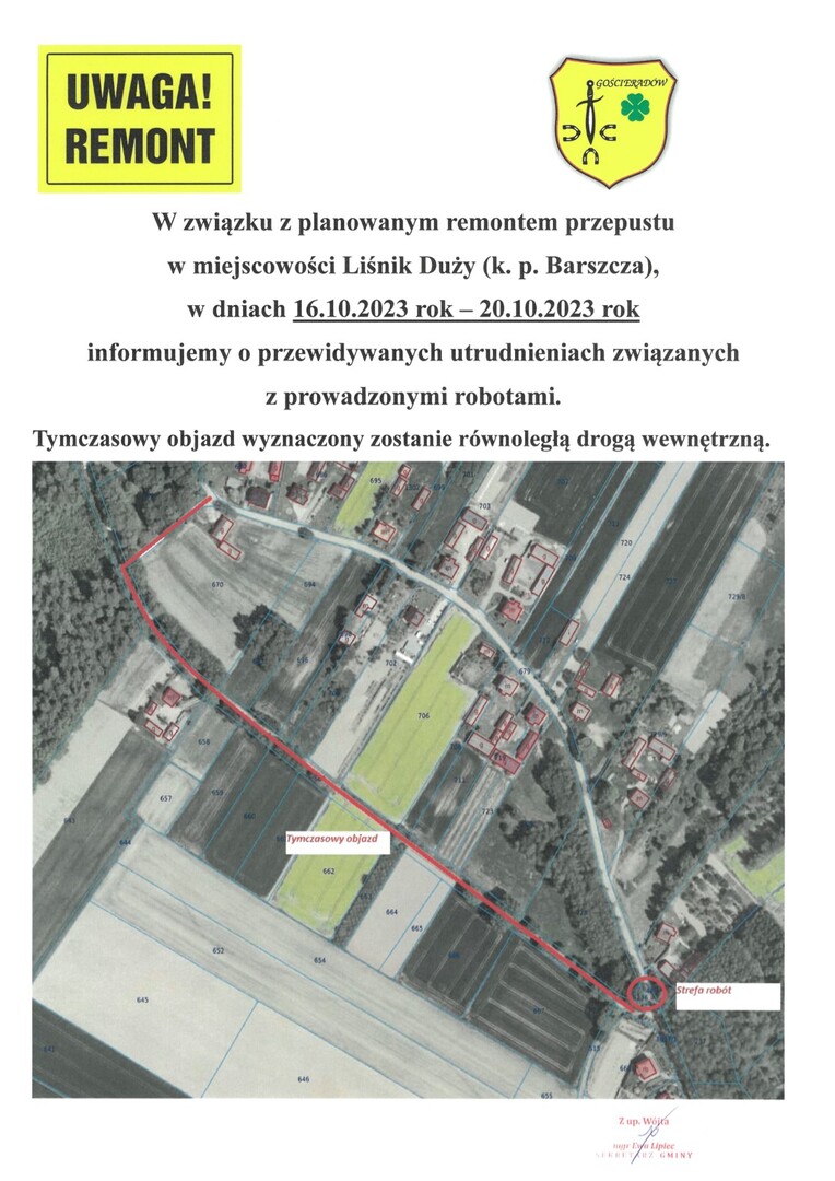 Tymczasowy objazd wyznaczony zostanie równoległą drogą wewnętrzną.