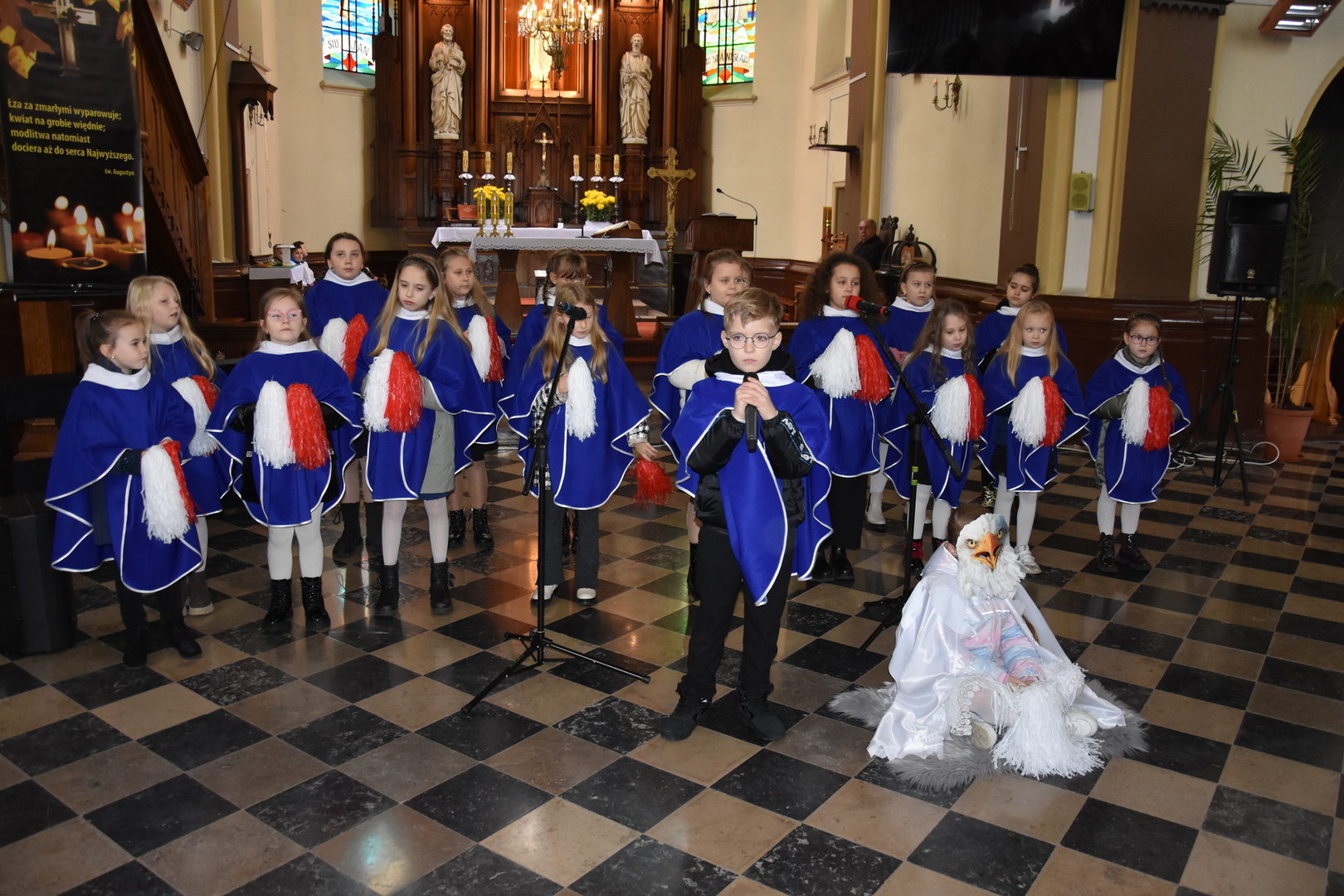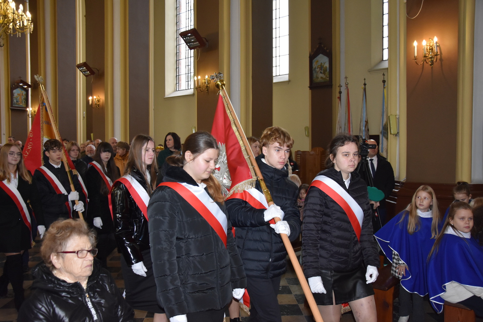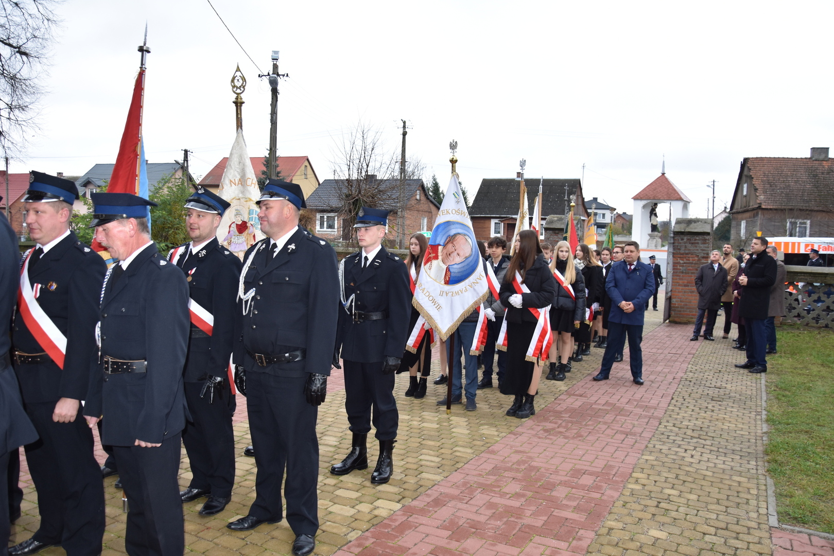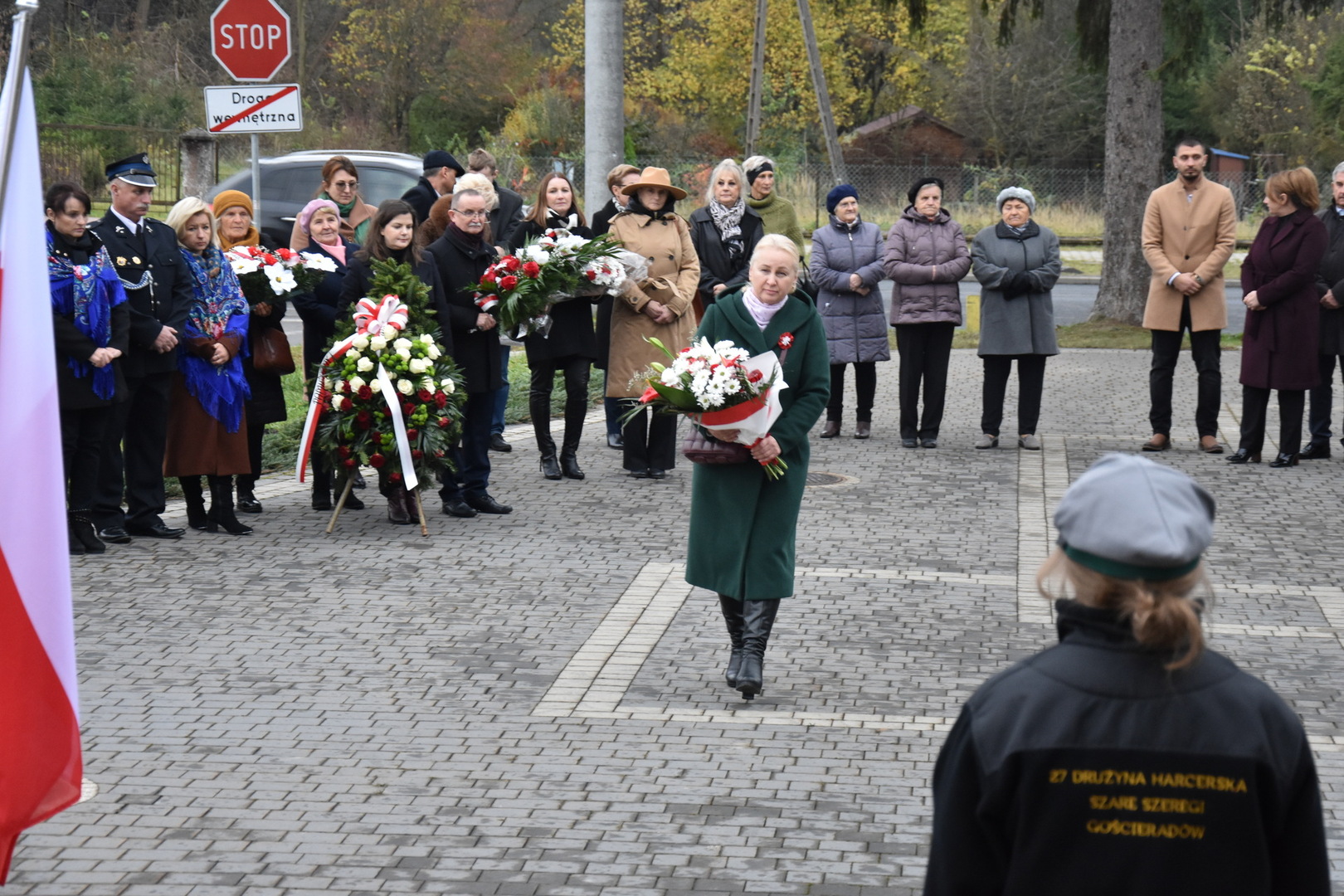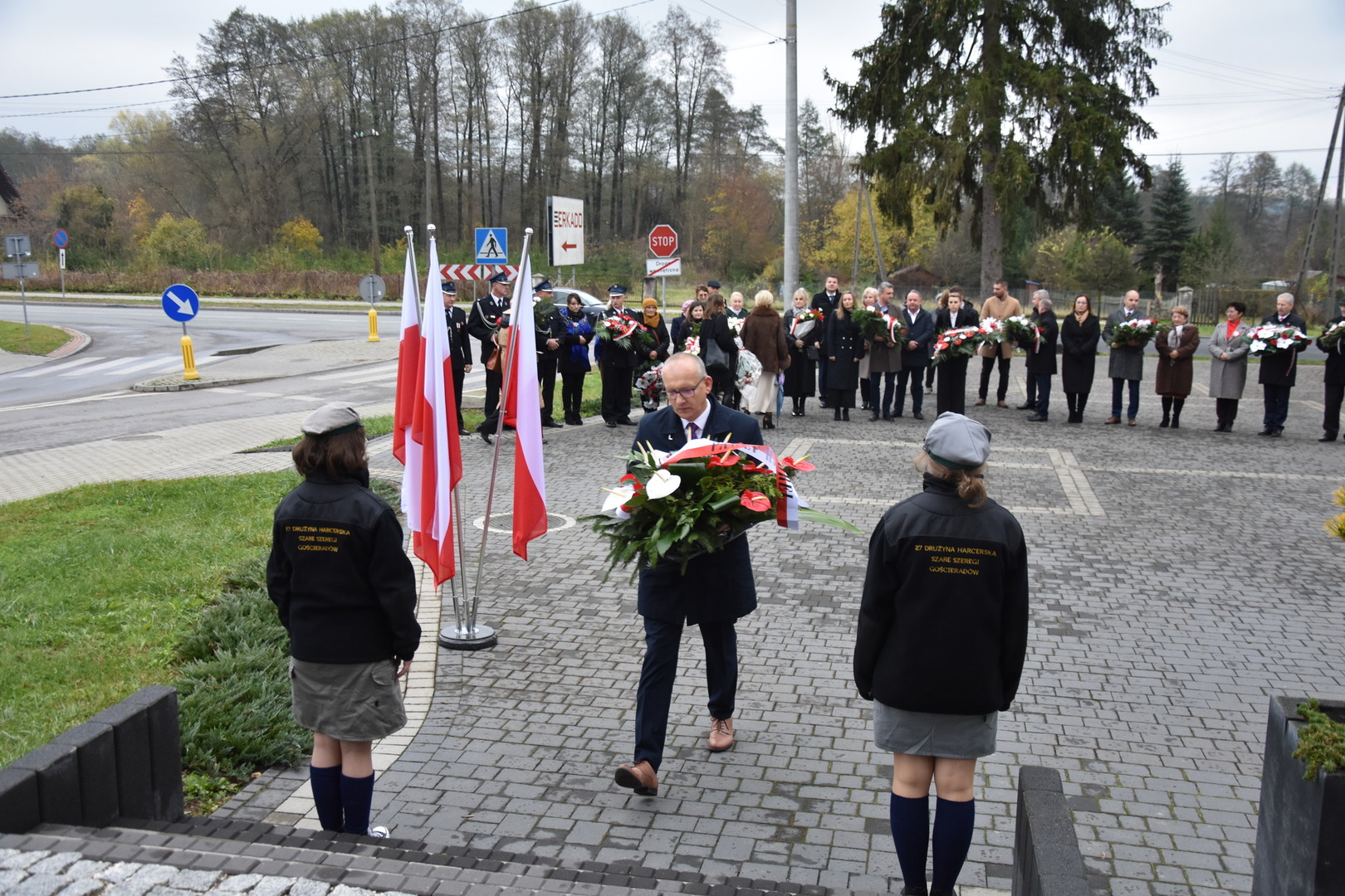 W dniu 11 listopada 2023 r.(sobota) o godz. 11:00 odbyła się Msza Święta odprawiona przez proboszcza ks. kan. Andrzeja Kontka w Kościele Parafialnym w Gościeradowie w intencji Ojczyzny rozpoczynająca się Koncertem Pieśni Patriotycznych wykonanym przez chór Małe Perełki Papieskie z ZPO im. Jana Pawła II w Gościeradowie. W uroczystej mszy św. udział wzięli z pocztami sztandarowymi przedstawiciele partii PSL, szkoły: ZPO im. Jana Pawła II w Gościeradowie, ZS im. Józefa Twaroga w Księżomierzy, PSP im. Janiny Wierzchowskiej w Liśniku Dużym, PSP im. Marii Konopnickiej w Mniszku, PSP im. ks. Karola Konopki w Szczecynie oraz jednostki: OSP Gościeradów, OSP Aleksandrów, OSP Liśnik Duży, OSP OSP Suchodoły oraz delegacja z OSP Salomin. Po Mszy Świętej odbył się Koncert pt. ,,Śpiew Wolności” w wykonaniu artystów sceny operowej: Anny Barskiej (sopran), Tomasza Mazura (baryton), Magdaleny Maciąg (skrzypce) oraz Alesii Aleksandrowicz (fortepian) przygotowany przez dyrektora GOK-u Romana Bissa. Na zakończenie uroczystości Narodowego Święta Niepodległości wójt gminy Mariusz Szczepanik, sekretarz gminy Ewa Lipiec, przewodniczący rady gminy Krzysztof Galant wraz z radnymi gminy, w imieniu starosty kraśnickiego Pawła Kudrela - członek zarządu powiatu Marek Kołtun, w imieniu radnej powiatu Edyty Dudzińskiej – radna gminy Aneta Stasiak, delegacja partii PSL, szkoły z terenu gminy, dyrektor Gminnej Biblioteki Publicznej Dorota Karkusiewicz, delegacja Domu Pomocy Społecznej w Gościeradowie, delegacja firmy Erkado Sp. z o.o., Stowarzyszenie Na Rzecz Rozwoju Wsi Szczecyn, Koło Gospodyń Wiejskich ,,Tatarczanki” z Salomina wraz z Ochotniczą Strażą Pożarną z Salomina, Koło Gospodyń Wiejskich w Liśniku Dużym, Koło Gospodyń Wiejskich w Mniszku, Klub Seniora oraz Ochotnicza Straż Pożarna z Aleksandrowa upamiętniając odzyskania niepodległości przez Polskę złożyli wiązanki oraz zapalili znicze przy Pomniku Pamięci Narodowej w Gościeradowie. W tym wyjątkowym dniu wartę przy pomniku pełnili harcerze z 27 DH ,,Szare Szeregi” z Gościeradowa. Dziękujemy pracownikom GOK-u za pomoc w przygotowaniu uroczystości.
