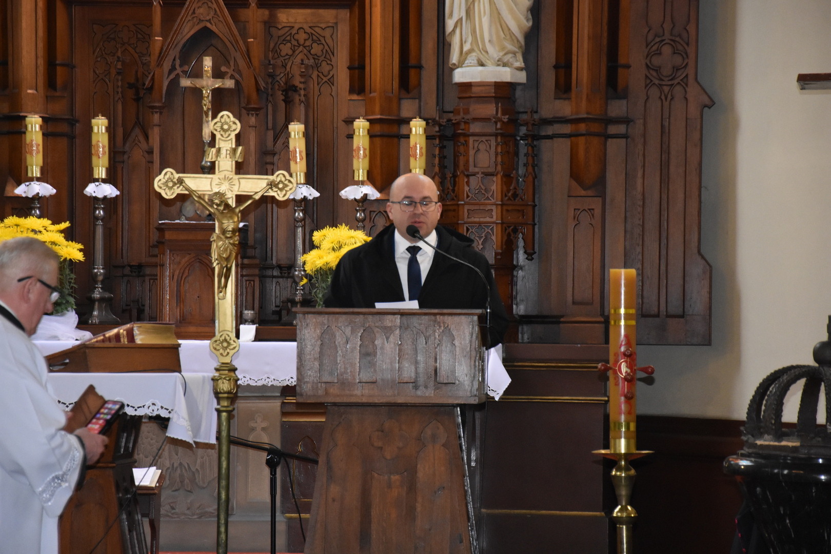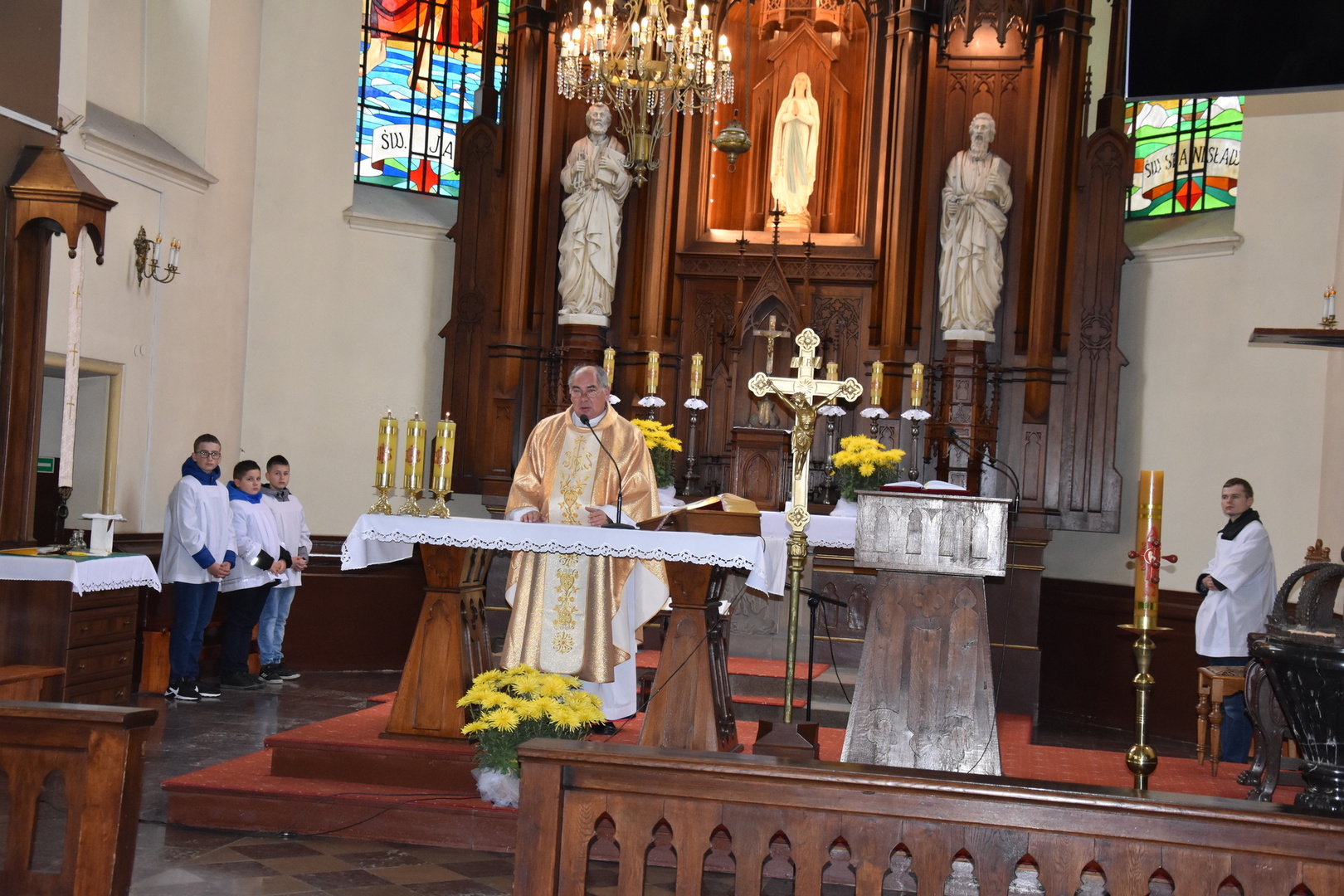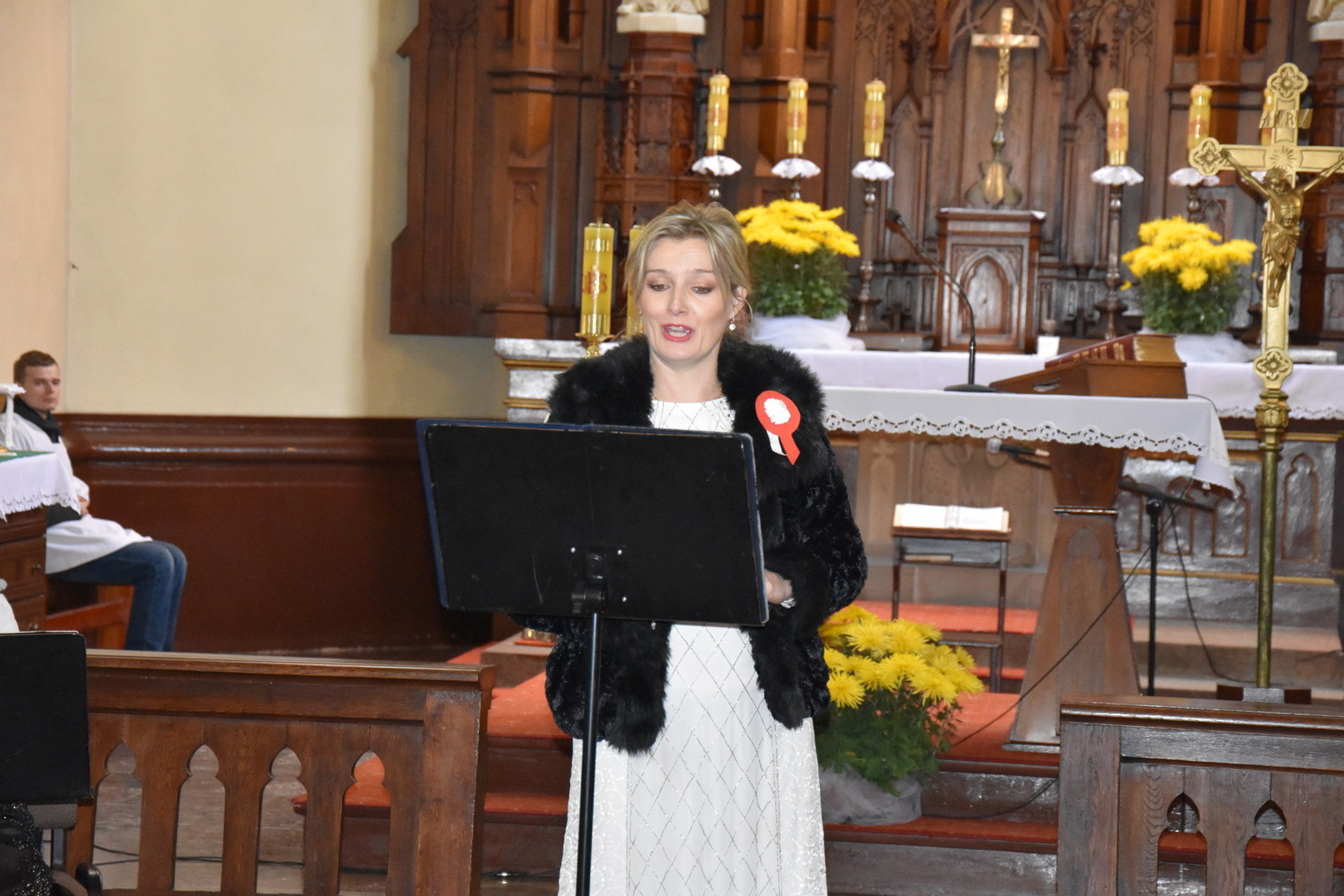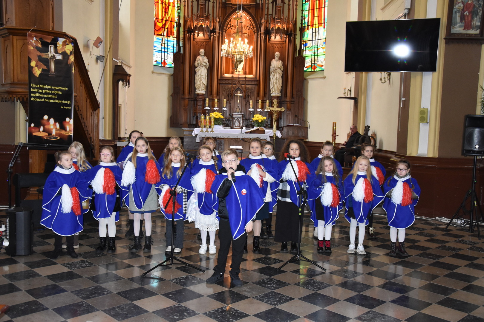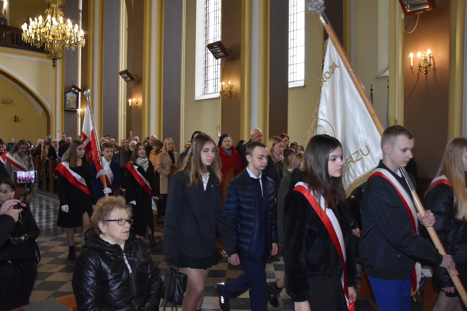 W dniu 11 listopada 2023 r.(sobota) o godz. 11:00 odbyła się Msza Święta odprawiona przez proboszcza ks. kan. Andrzeja Kontka w Kościele Parafialnym w Gościeradowie w intencji Ojczyzny rozpoczynająca się Koncertem Pieśni Patriotycznych wykonanym przez chór Małe Perełki Papieskie z ZPO im. Jana Pawła II w Gościeradowie. W uroczystej mszy św. udział wzięli z pocztami sztandarowymi przedstawiciele partii PSL, szkoły: ZPO im. Jana Pawła II w Gościeradowie, ZS im. Józefa Twaroga w Księżomierzy, PSP im. Janiny Wierzchowskiej w Liśniku Dużym, PSP im. Marii Konopnickiej w Mniszku, PSP im. ks. Karola Konopki w Szczecynie oraz jednostki: OSP Gościeradów, OSP Aleksandrów, OSP Liśnik Duży, OSP OSP Suchodoły oraz delegacja z OSP Salomin. Po Mszy Świętej odbył się Koncert pt. ,,Śpiew Wolności” w wykonaniu artystów sceny operowej: Anny Barskiej (sopran), Tomasza Mazura (baryton), Magdaleny Maciąg (skrzypce) oraz Alesii Aleksandrowicz (fortepian) przygotowany przez dyrektora GOK-u Romana Bissa. Na zakończenie uroczystości Narodowego Święta Niepodległości wójt gminy Mariusz Szczepanik, sekretarz gminy Ewa Lipiec, przewodniczący rady gminy Krzysztof Galant wraz z radnymi gminy, w imieniu starosty kraśnickiego Pawła Kudrela - członek zarządu powiatu Marek Kołtun, w imieniu radnej powiatu Edyty Dudzińskiej – radna gminy Aneta Stasiak, delegacja partii PSL, szkoły z terenu gminy, dyrektor Gminnej Biblioteki Publicznej Dorota Karkusiewicz, delegacja Domu Pomocy Społecznej w Gościeradowie, delegacja firmy Erkado Sp. z o.o., Stowarzyszenie Na Rzecz Rozwoju Wsi Szczecyn, Koło Gospodyń Wiejskich ,,Tatarczanki” z Salomina wraz z Ochotniczą Strażą Pożarną z Salomina, Koło Gospodyń Wiejskich w Liśniku Dużym, Koło Gospodyń Wiejskich w Mniszku, Klub Seniora oraz Ochotnicza Straż Pożarna z Aleksandrowa upamiętniając odzyskania niepodległości przez Polskę złożyli wiązanki oraz zapalili znicze przy Pomniku Pamięci Narodowej w Gościeradowie. W tym wyjątkowym dniu wartę przy pomniku pełnili harcerze z 27 DH ,,Szare Szeregi” z Gościeradowa. Dziękujemy pracownikom GOK-u za pomoc w przygotowaniu uroczystości.