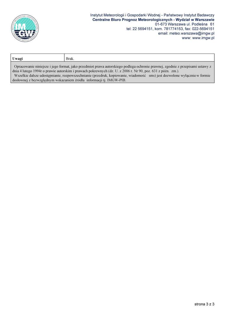 Wszelkie dalsze udostępnianie, rozpowszechnianie (przedruk, kopiowanie, wiadomość sms) jest dozwolone wyłącznie w formie dosłownej z bezwzględnym wskazaniem źródła informacji tj. IMGW-PIB.