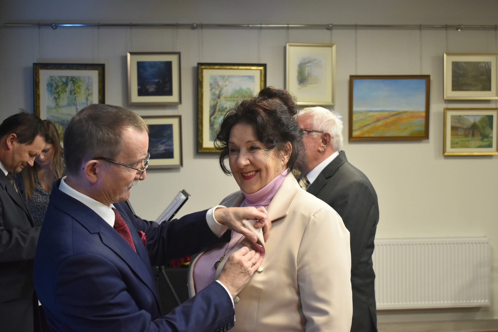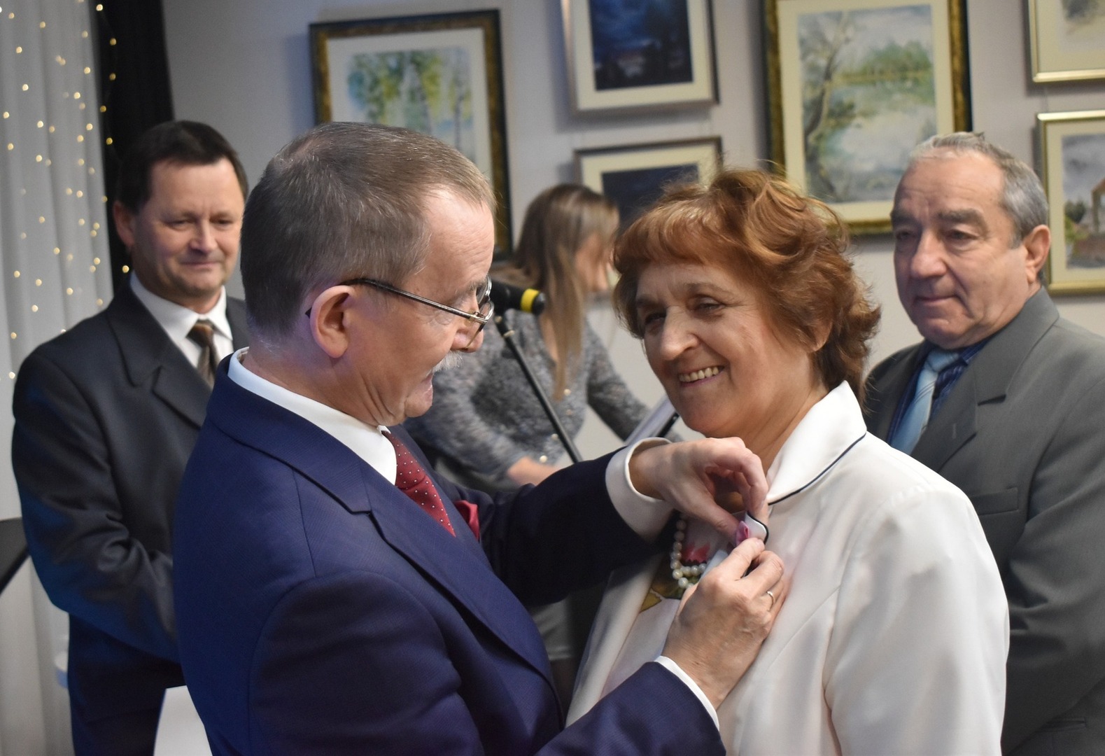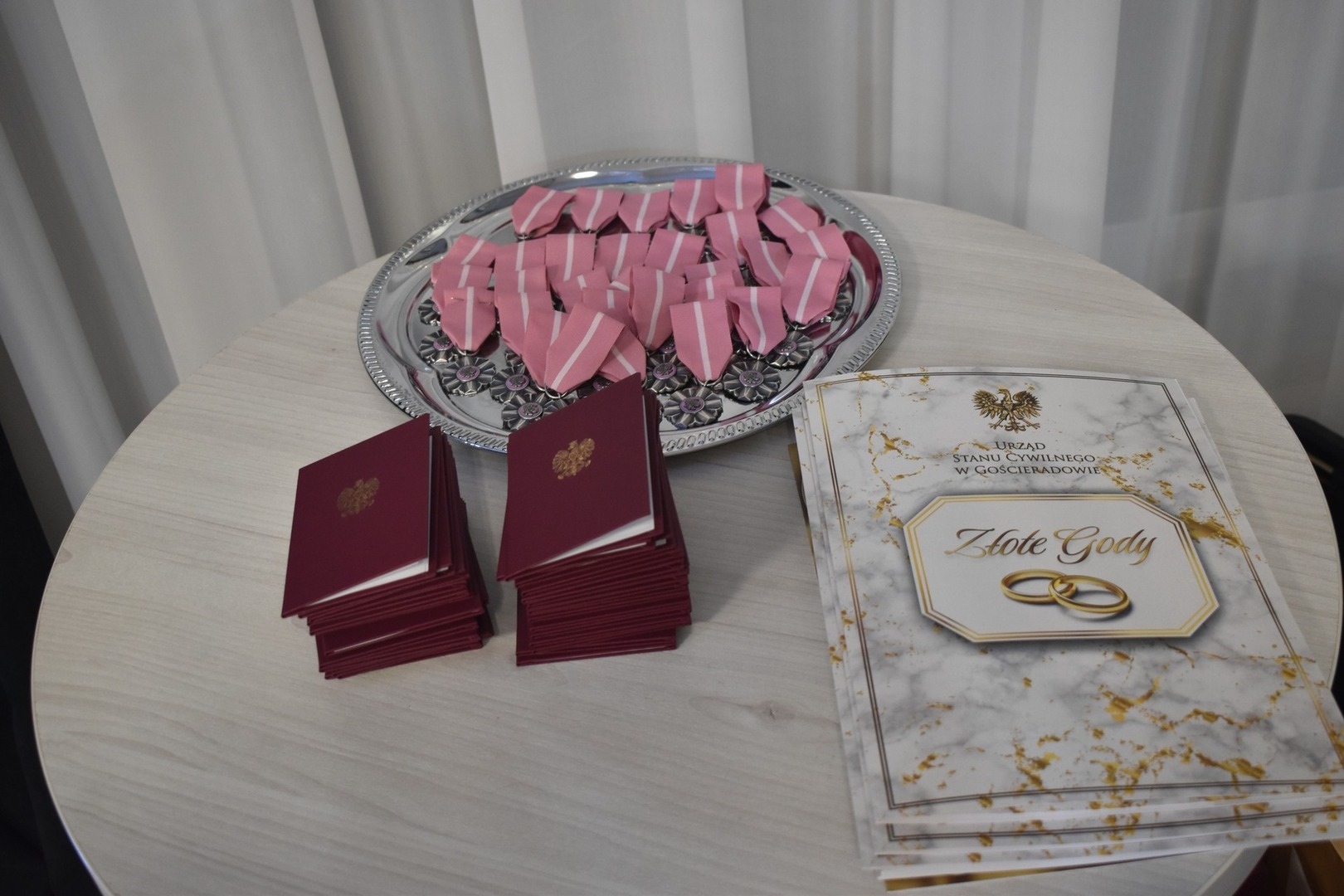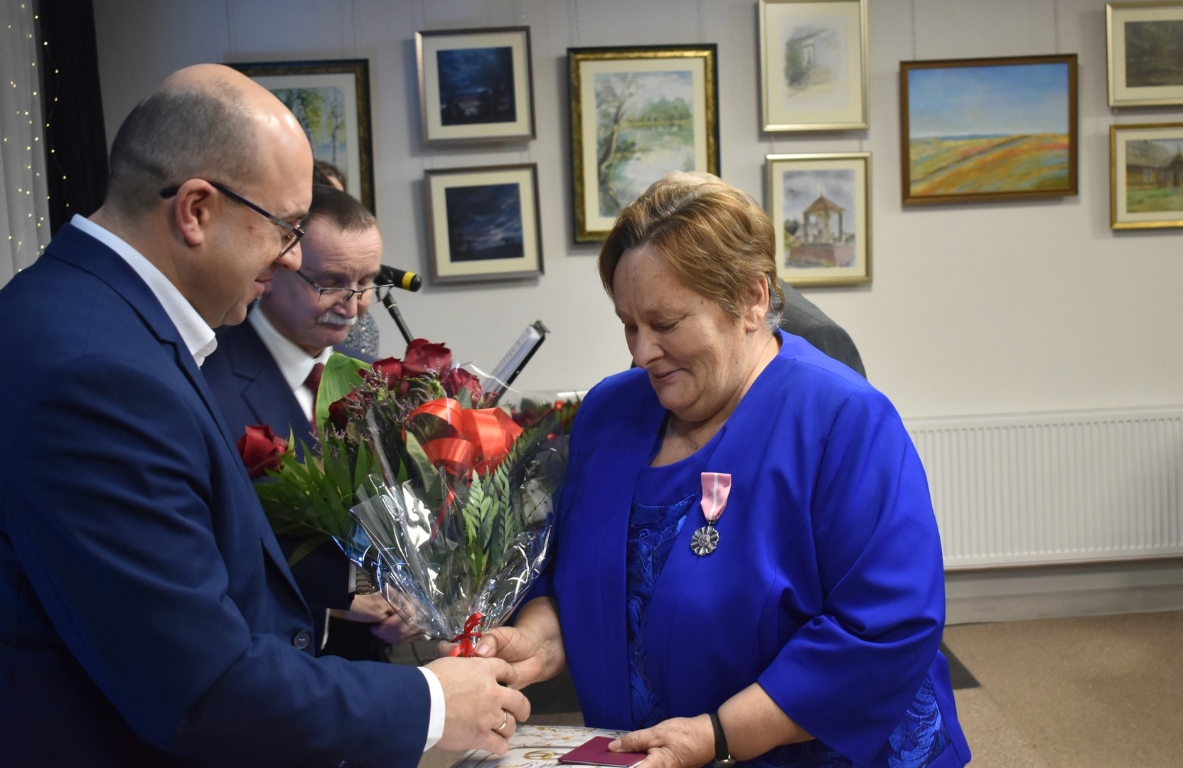 Po przemówieniach, Wójt Gminy odznaczył złotych i diamentowych jubilatów Medalami Za Długoletnie Pożycie Małżeńskie, przyznane przez Prezydenta RP Andrzeja Dudę. Świętujące pary obdarowano także kwiatami i pamiątkowymi dyplomami wręczanymi przez Romana Bissa Dyrektora Gminnego Ośrodka Kultury oraz Grzegorza Tomczyka Zastępcę Kierownika Urzędu Stanu Cywilnego.