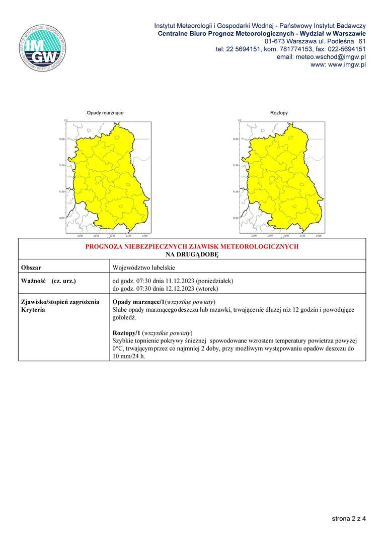 Ważność (cz. urz.) od godz. 07:30 dnia 10.12.2023 (niedziela) do godz. 07:30 dnia 11.12.2023 (poniedziałek)