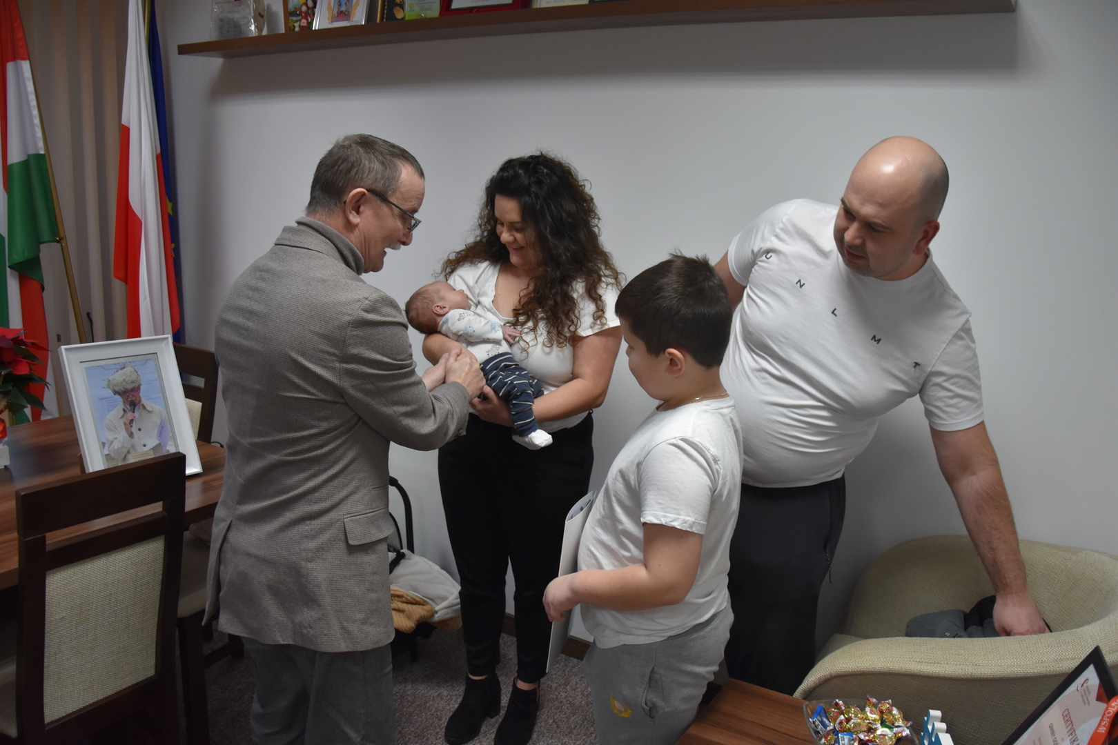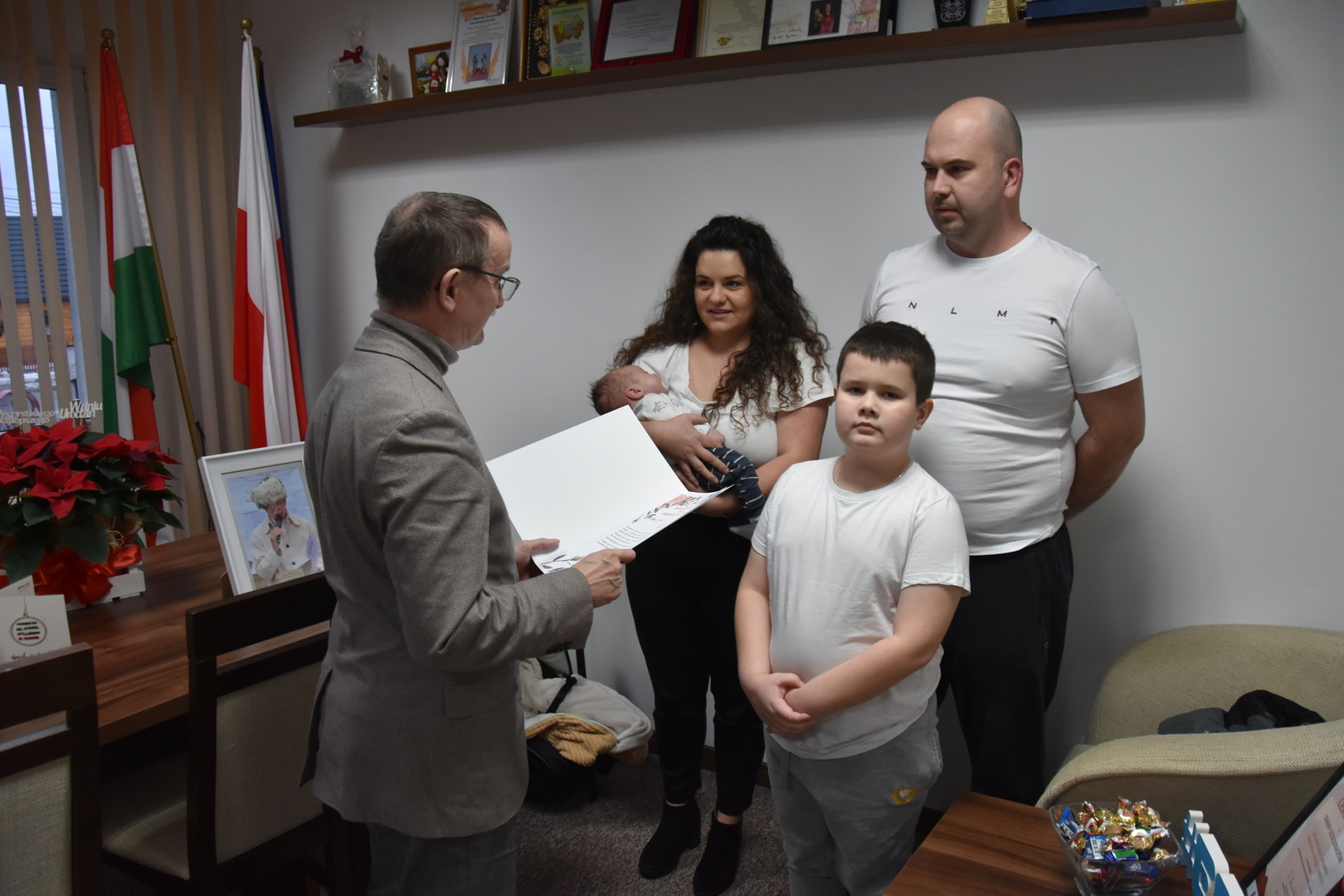 W dniu dzisiejszym tj. 13 grudnia 2023 r. Wójt Gminy Gościeradów powitał nowego mieszkańca gminy Gościeradów – Adama Gawrysiaka. Składamy serdeczne gratulacje świeżo upieczonym rodzicom – Arturowi i Ilonie Gawrysiakom z okazji powiększenia rodziny oraz życzymy abyście dawali sobie radość i zrozumienie, a każdy kolejny dzień przynosił jeszcze więcej miłości.
