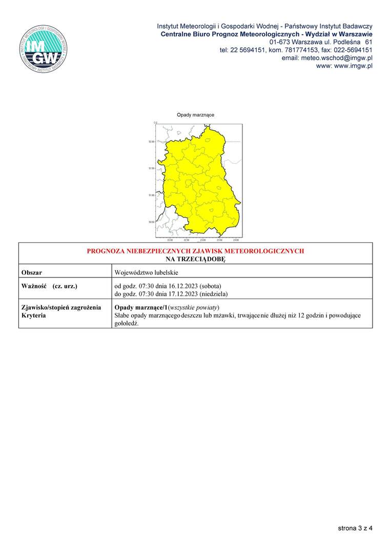 PROGNOZA NIEBEZPIECZNYCH ZJAWISK METEOROLOGICZNYCH NA TRZECIĄ DOBĘ
