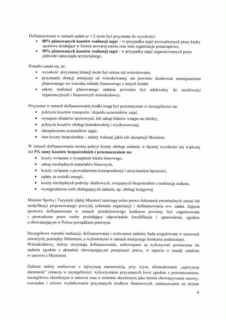 Minister Sportu i Turystyki (dalej Minister) zastrzega sobie prawo dokonania ewentualnych zmian lub modyfikacji proponowanego powyżej schematu organizacji i dofinansowania ww. zadań. Zajęcia sportowe dofinansowane w ramach przedmiotowego konkursu powinny być organizowane i prowadzone przez osoby posiadające odpowiednie kwalifikacje i uprawnienia, zgodnie z obowiązującym w Polsce porządkiem prawnym.