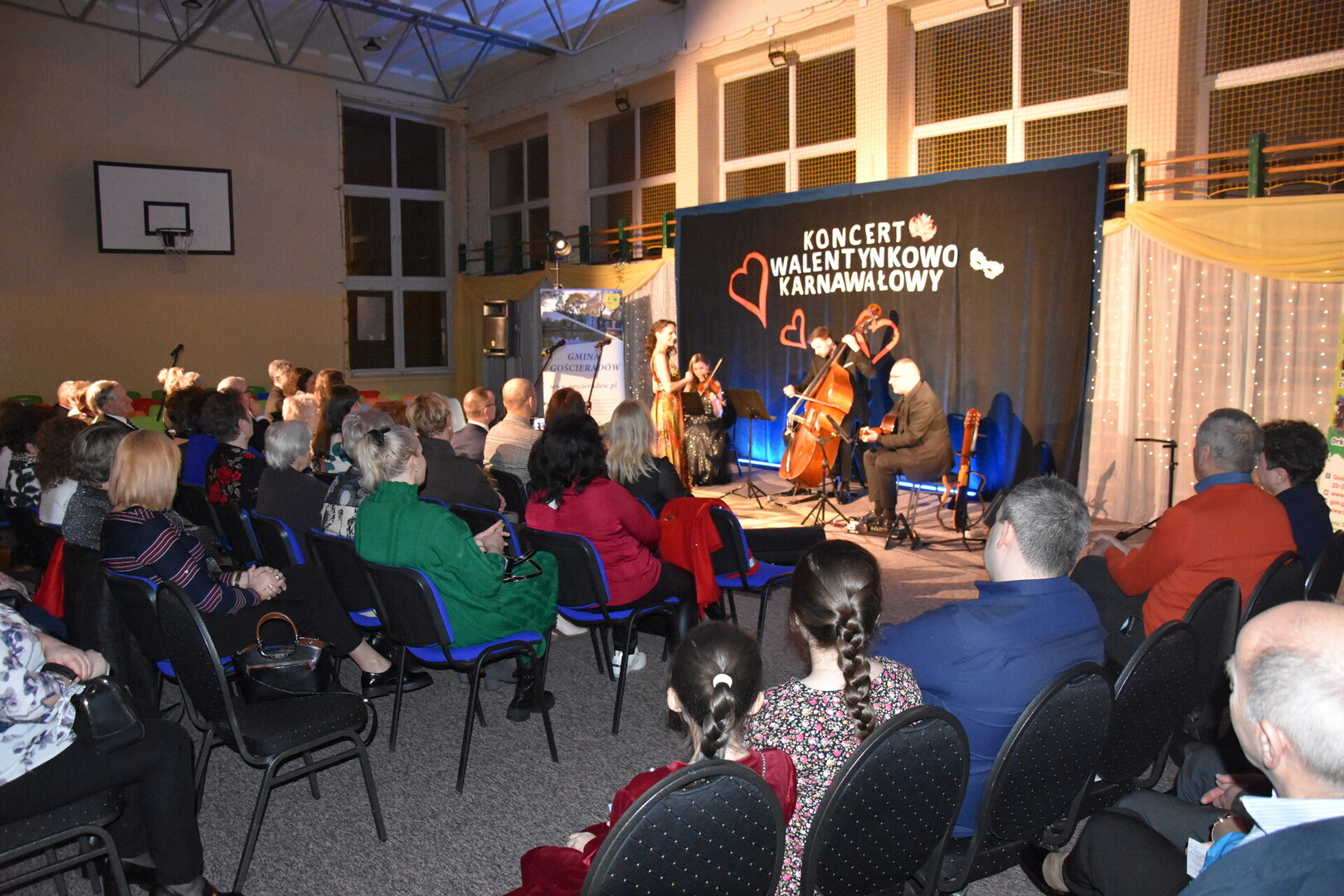 W ubiegłą sobotę tj. 10 lutego 2024 r. w Zespole Placówek Oświatowych im. Jana Pawła II w Gościeradowie odbył się ,,Koncert walentynkowo – karnawałowy”. Koncert rozpoczęły artystki z naszej gminy: Anna Sękala oraz Letycja Łyszczarz. Następnie wystąpili soliści Polskiej Opery Królewskiej: Justyna Reczeniedi (sopran), Sylwester Smulczyński (tenor) w akompaniamencie Zespołu Con Passione: Kamila Szalińska – Balwas (skrzypce), Maciej Dobrzański (kontrabas) oraz Marcin Olak (gitara). Wieczór z operą należał do bardzo udanych. Uczestnicy wydarzenia byli zachwyceni znajdującymi się w programie słynnymi duetami, ariami, pieśniami neapolitańskimi oraz utworami karnawałowymi, które są doskonałą okazją do spędzenia wolnego wieczoru ze sztuką.