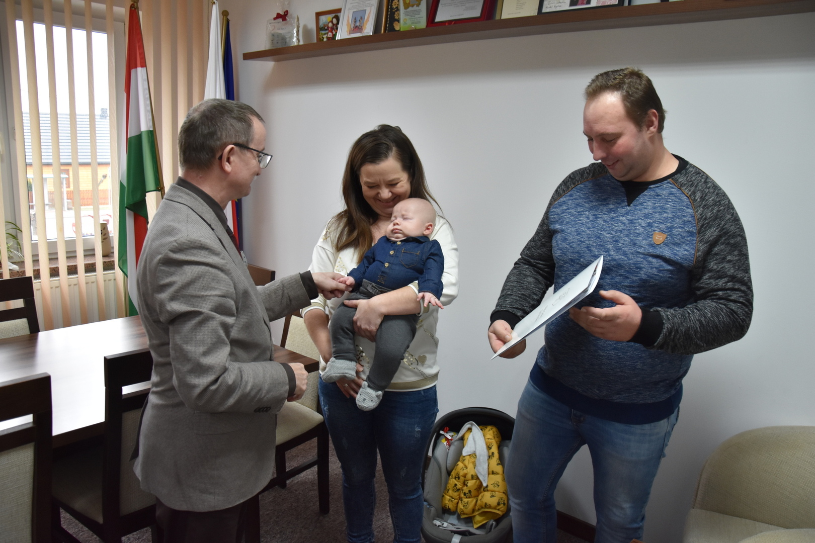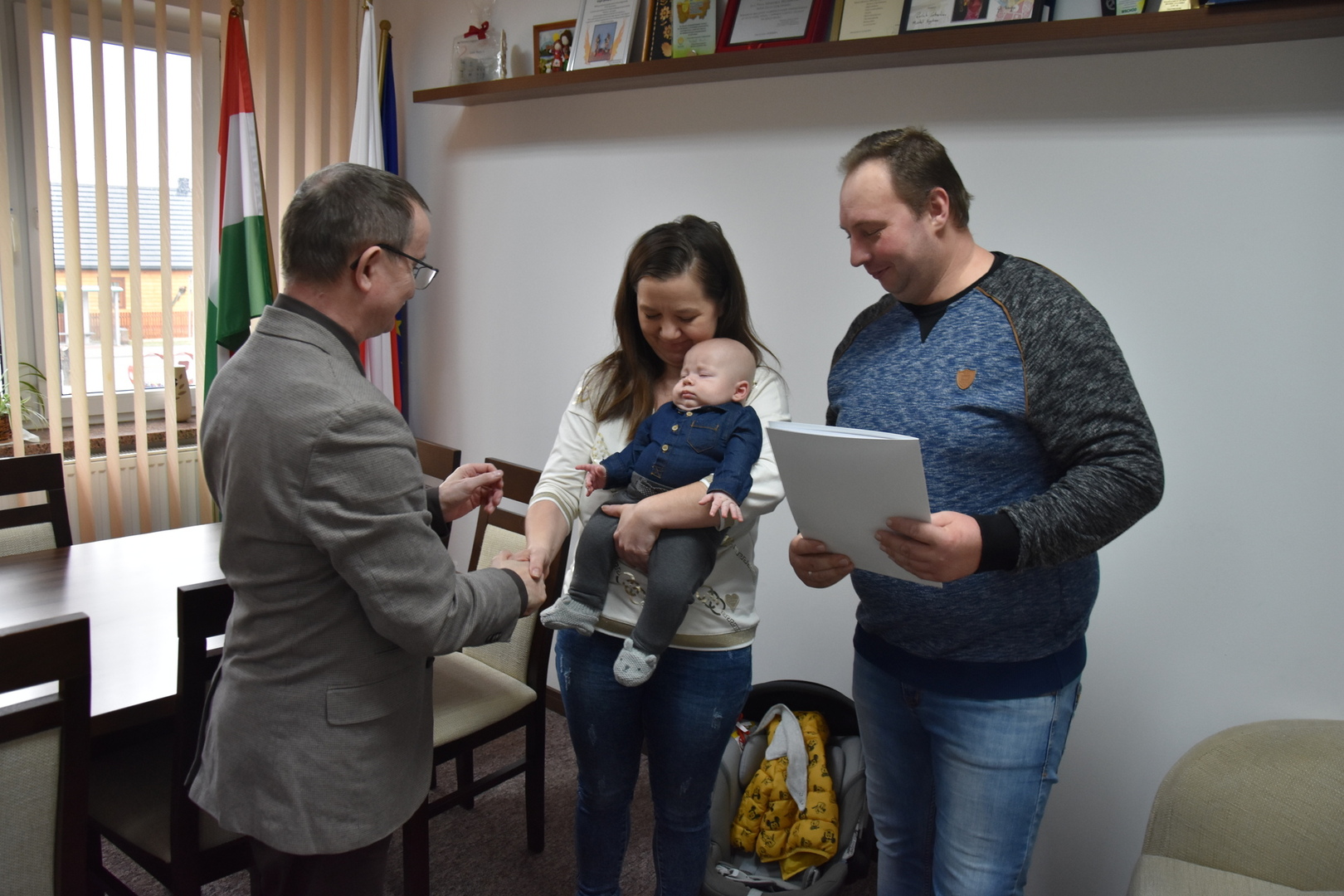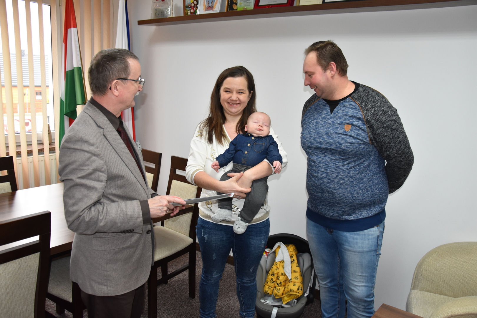 Podczas dzisiejszego spotkania (04.03.2024 r.) w Urzędzie Gminy Gościeradów, wójt Mariusz Szczepanik serdecznie gratulował świeżo upieczonym rodzicom Mariuszowi i Ewelinie Figurom z okazji narodzin syna Szymona oraz złożył życzenia dla całej rodziny.