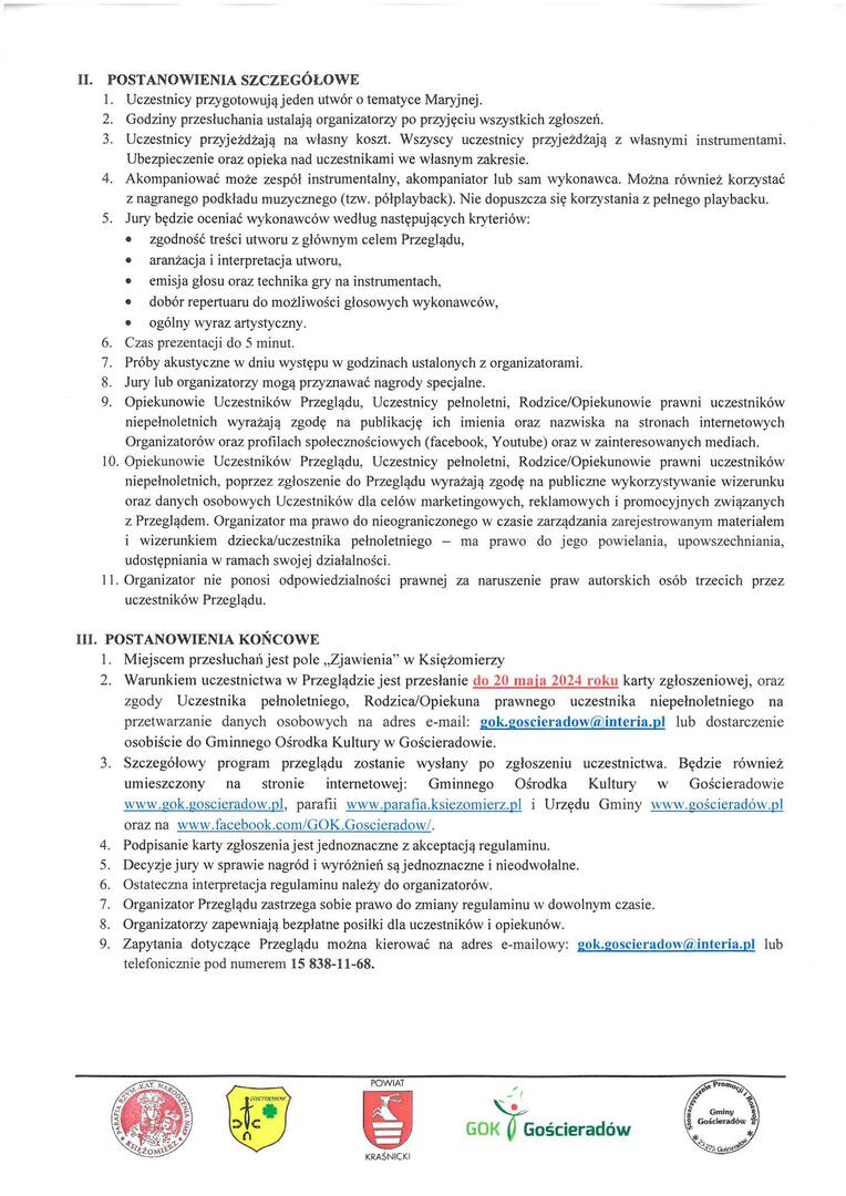 W imieniu organizatorów zapraszamy na pełnoletność naszego przeglądu czyli na XVIII Międzydiecezjalny Przegląd Pieśni Maryjnej pod hasłem "Matko, która nas znasz, z dziećmi swymi bądź".