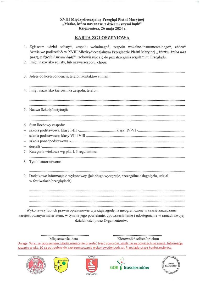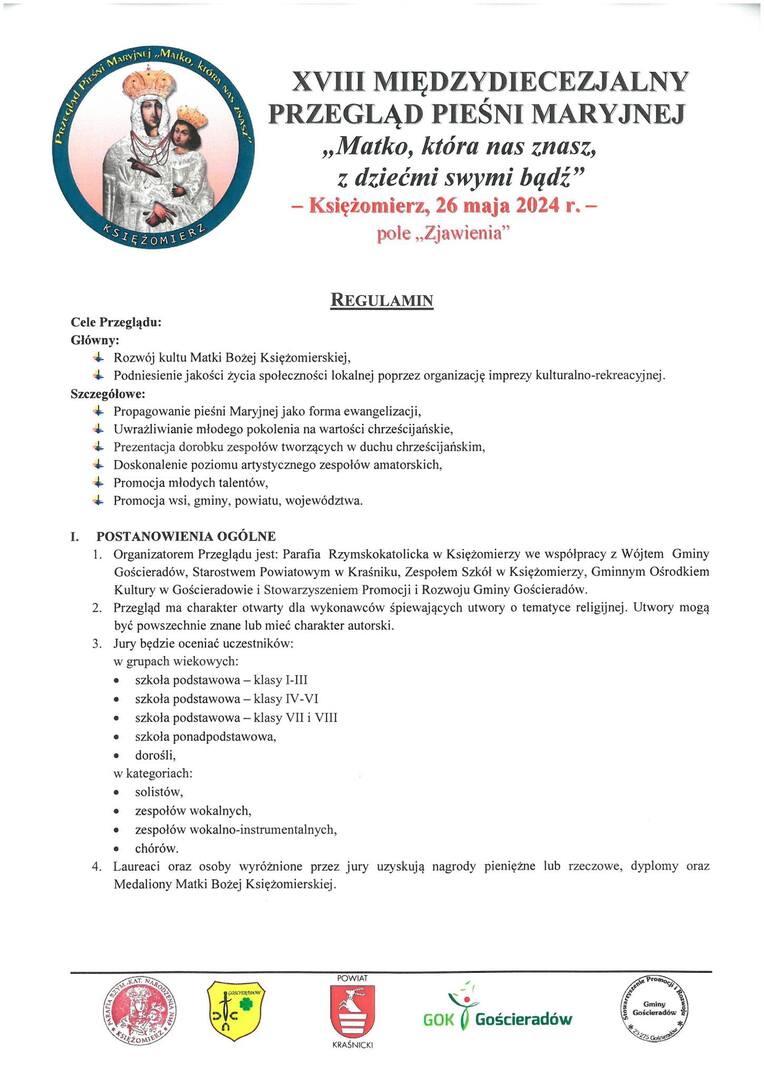 W imieniu organizatorów zapraszamy na pełnoletność naszego przeglądu czyli na XVIII Międzydiecezjalny Przegląd Pieśni Maryjnej pod hasłem "Matko, która nas znasz, z dziećmi swymi bądź".
