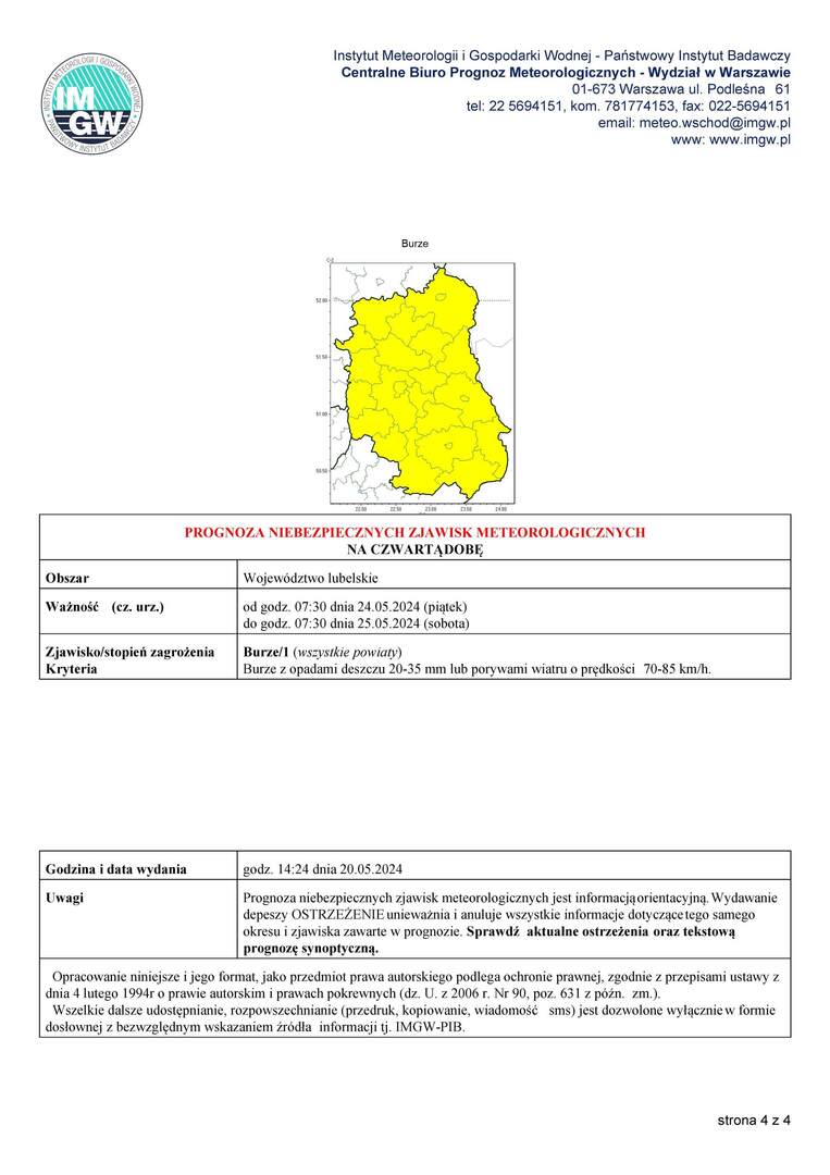 Ważność (cz. urz.) od godz. 07:30 dnia 22.05.2024 (środa) do godz. 07:30 dnia 23.05.2024 (czwartek)