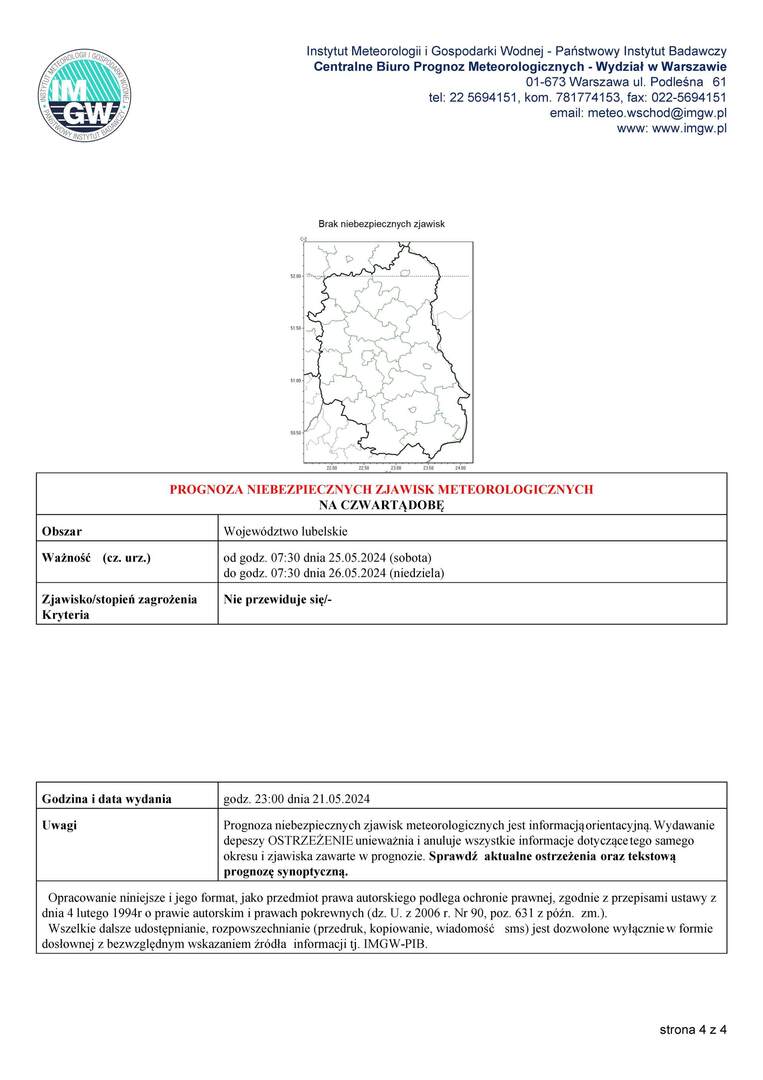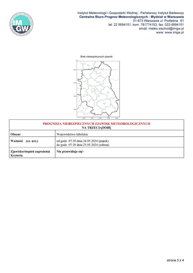 Ważność (cz. urz.) od godz. 07:30 dnia 22.05.2024 (środa) do godz. 07:30 dnia 23.05.2024 (czwartek)